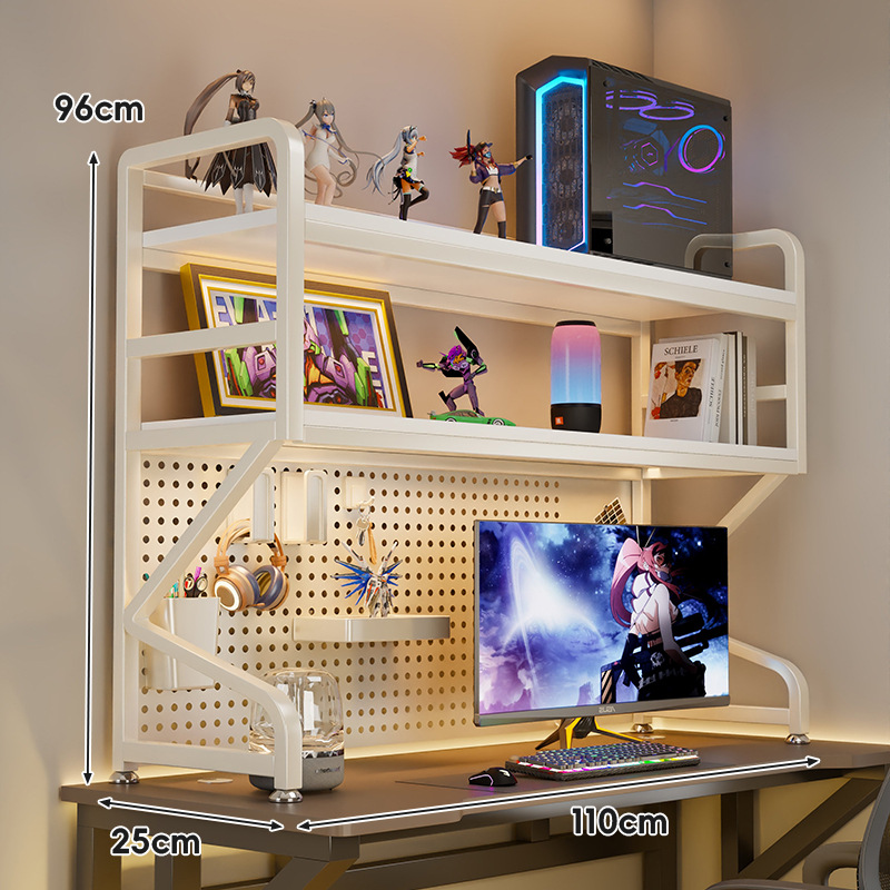 • 더블 레이어 - 화이트 선반 + 화이트 보드 - 길이 110cm [추가 20개 세트 + 자석 버클]