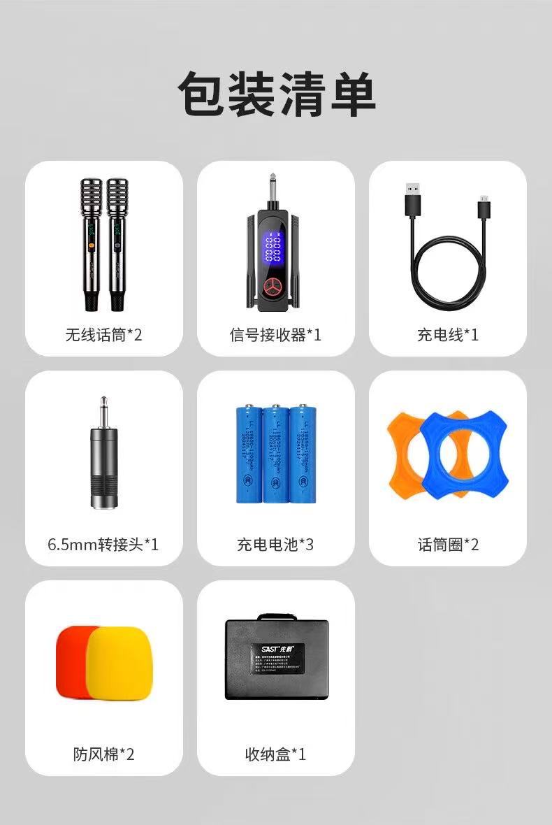 Xianke OK-113 금속 충전식 마이크 1-2 무선 핸드헬드 마이크 홈 KTV 노래 회의