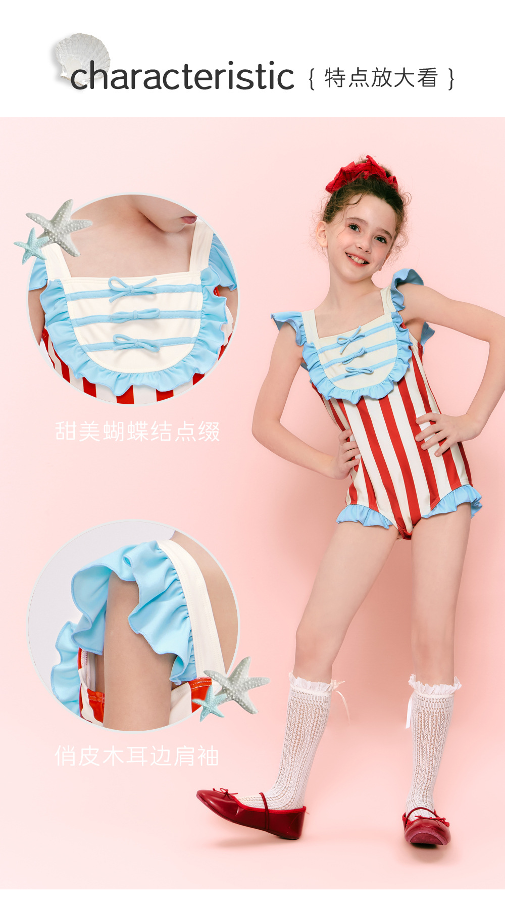 여아 원피스 수영복, 아동 자외선 차단 속건 삼각 수영복, 유아 및 중년 어린이 온천 휴가 아동 수영복