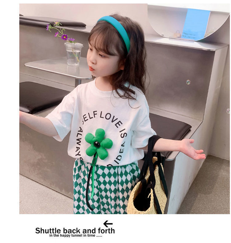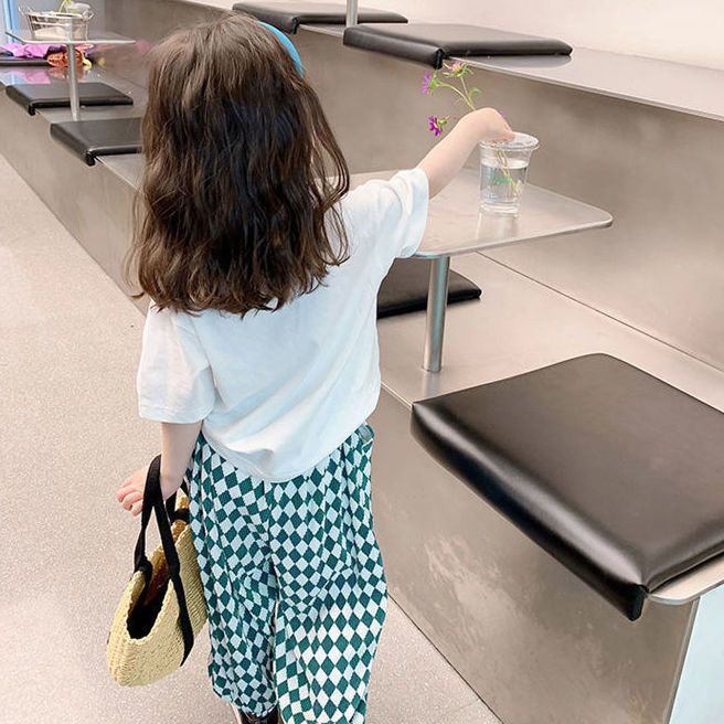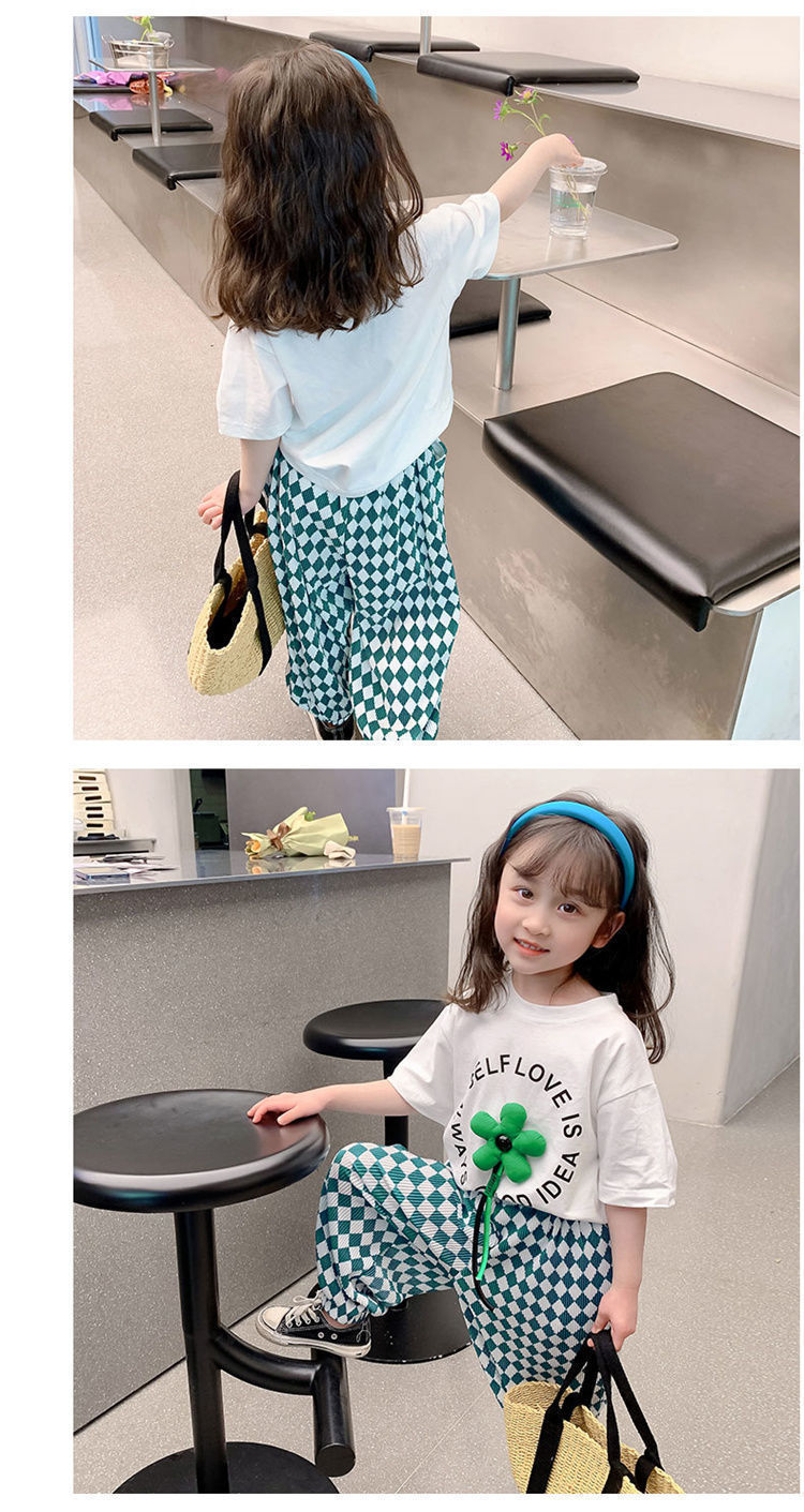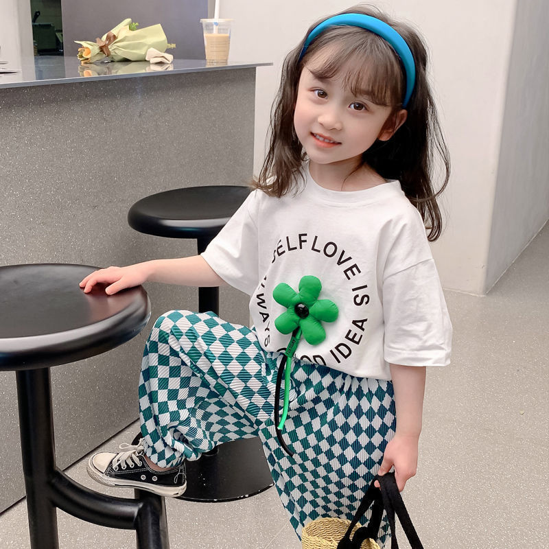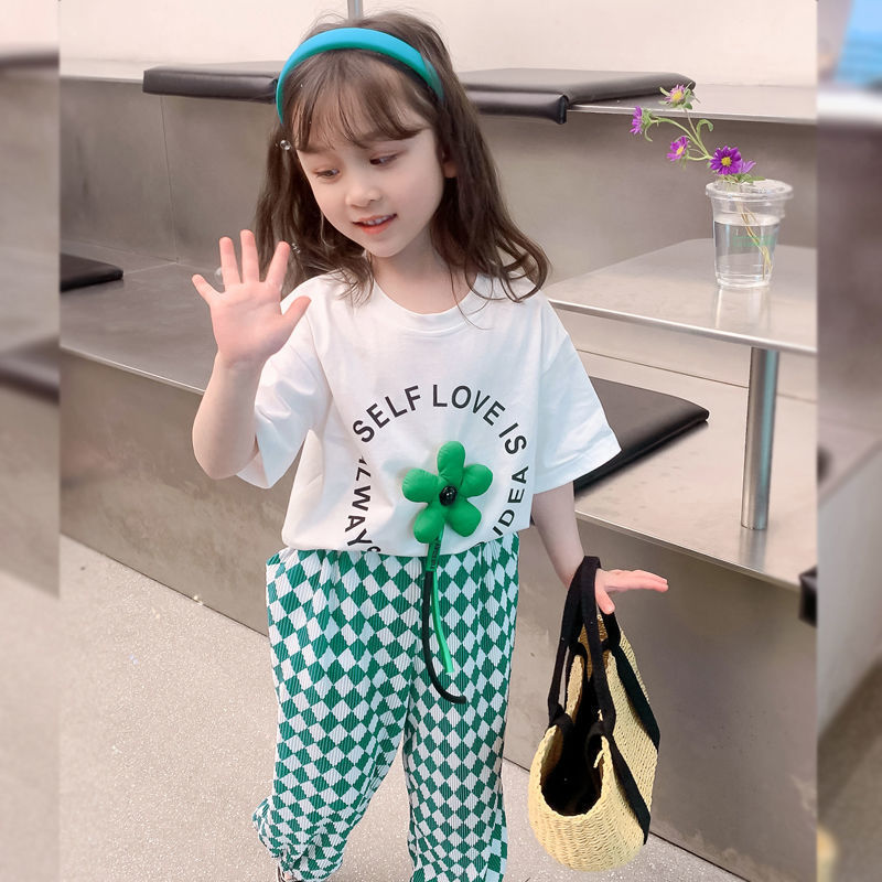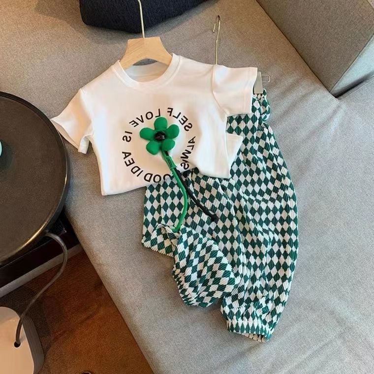 여자 캐주얼 정장 2025 여름 새로운 어린이 스타일 만화 반팔 모기 방지 바지 아기 소녀 투피스 세트스토어 가기