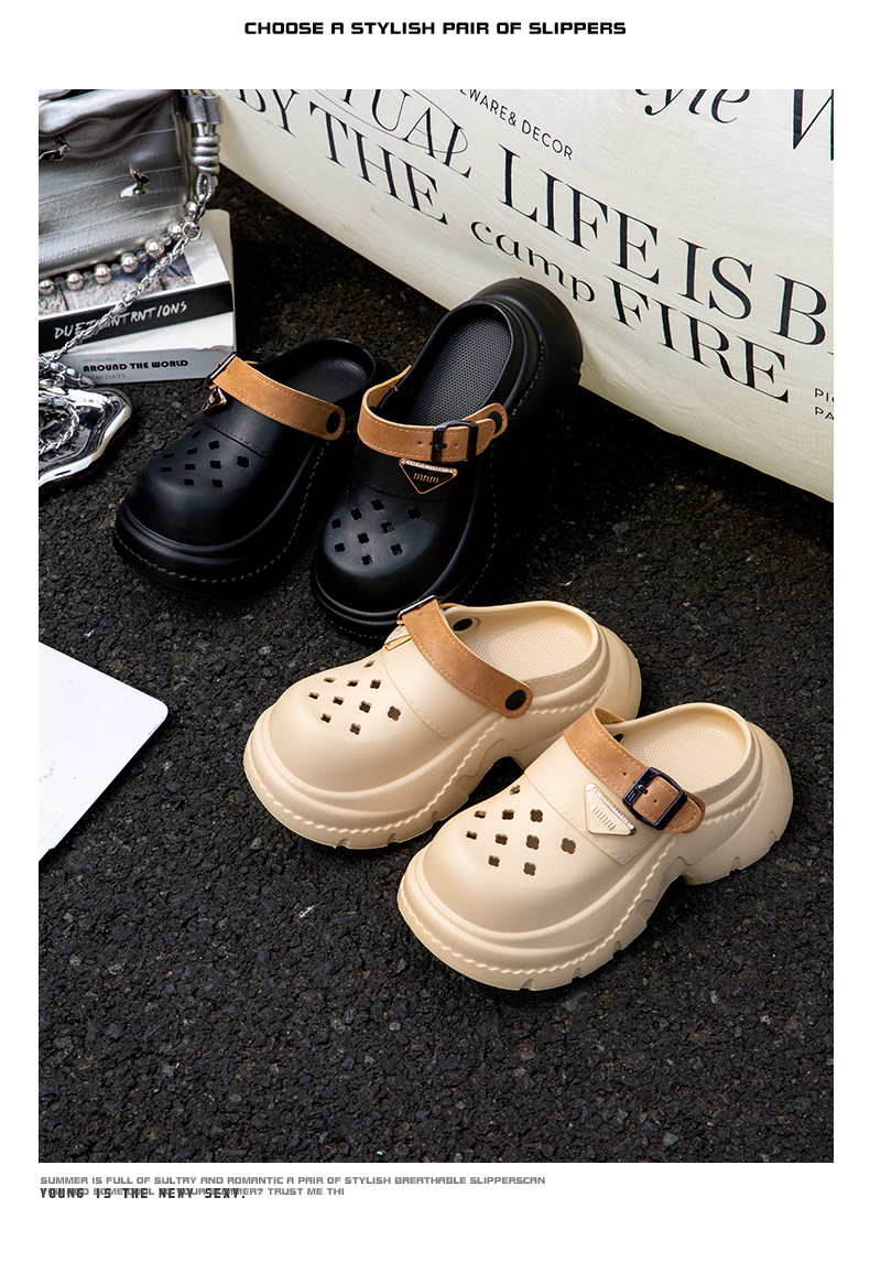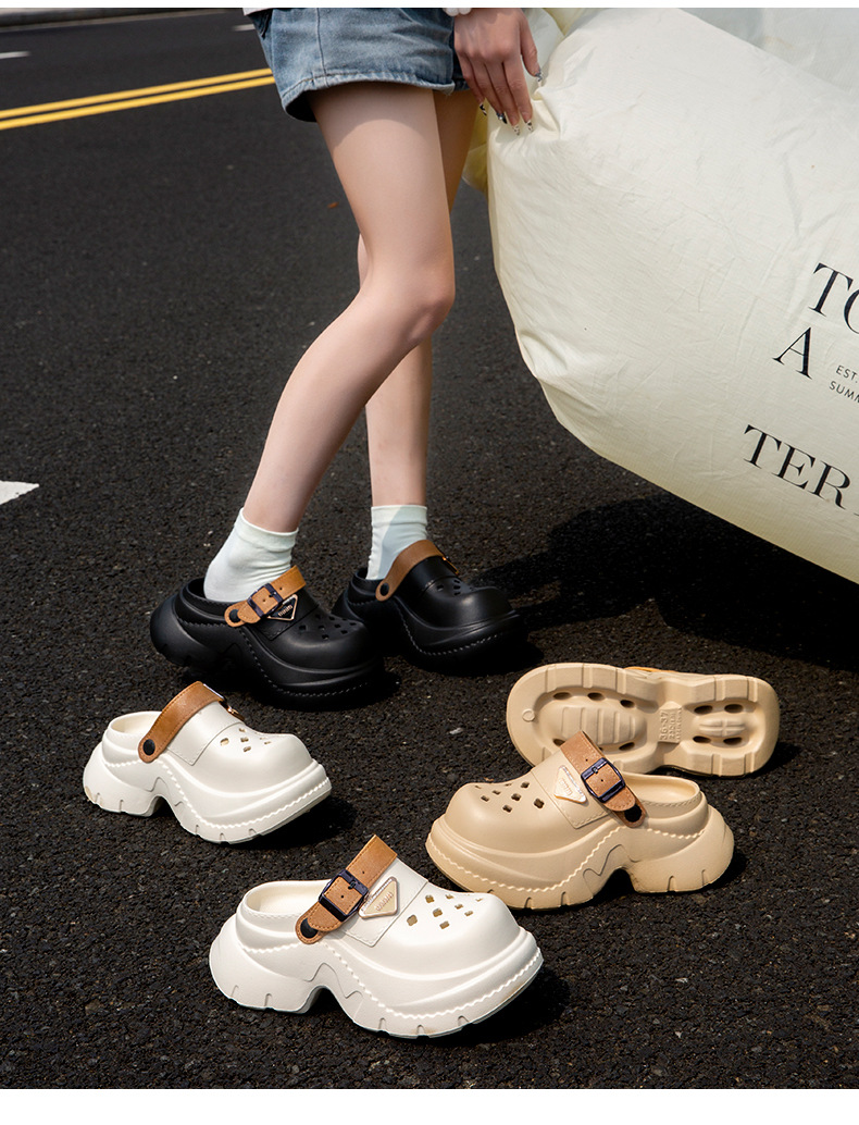 여성을 위한 두꺼운 밑창 메리제인 나막신 2025 신상 여름 아웃도어 미끄럼 방지 비치 슈즈, 똥 밟는 느낌의 샌들스토어 가기