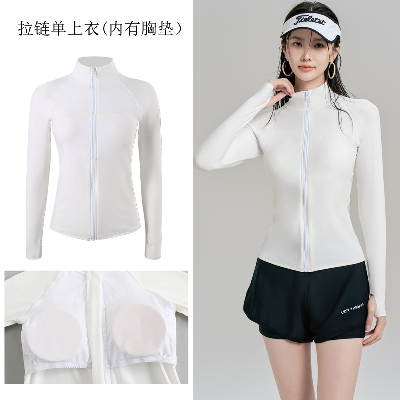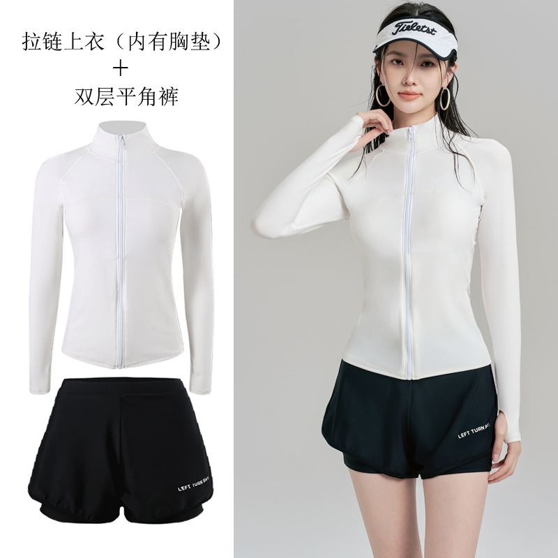 여성용 스플릿 수영복, 스포츠 보수적 긴팔 지퍼가 달린 가슴 패드로 배를 덮고 슬리밍 학생 수영 온천 휴가 수영복