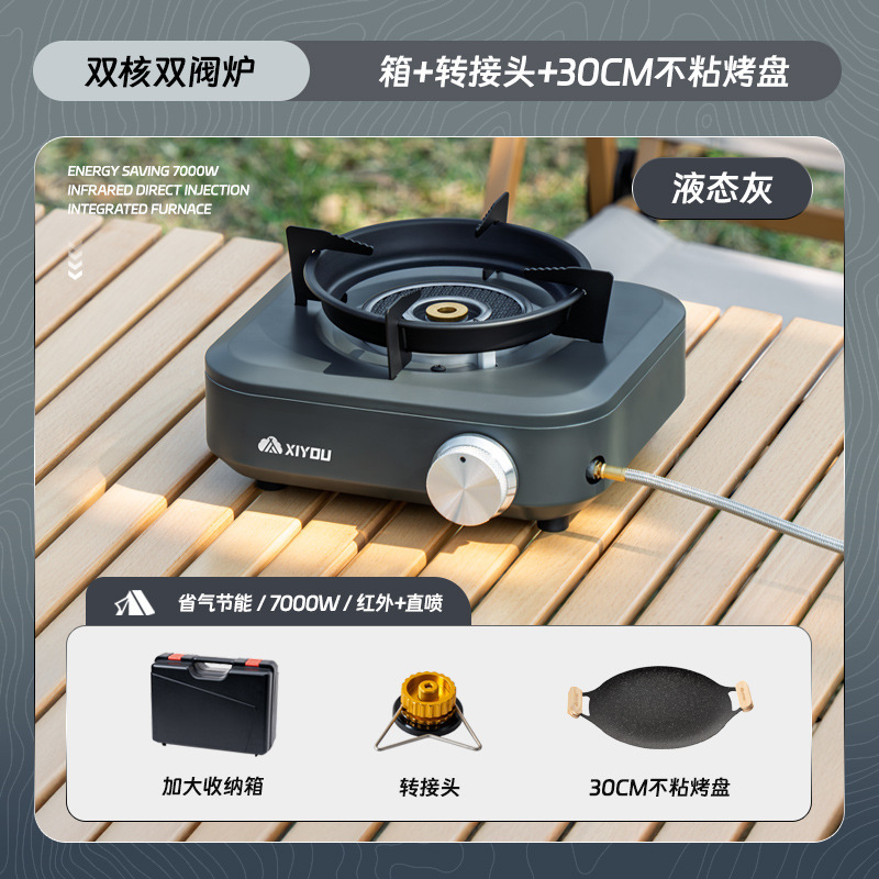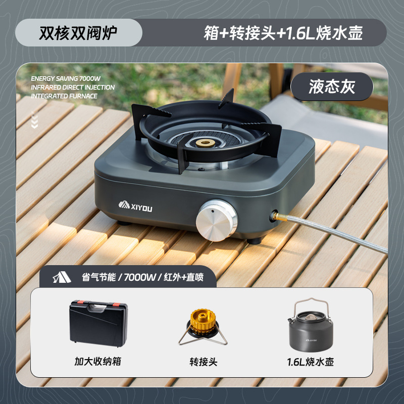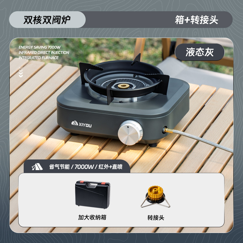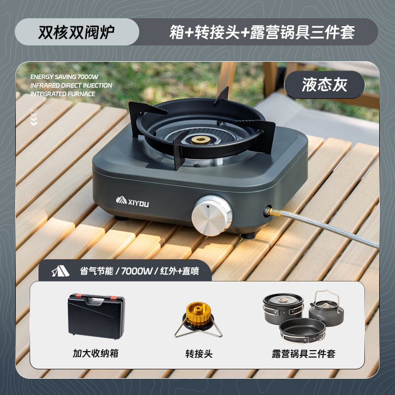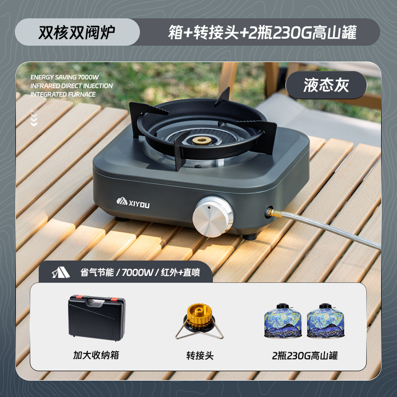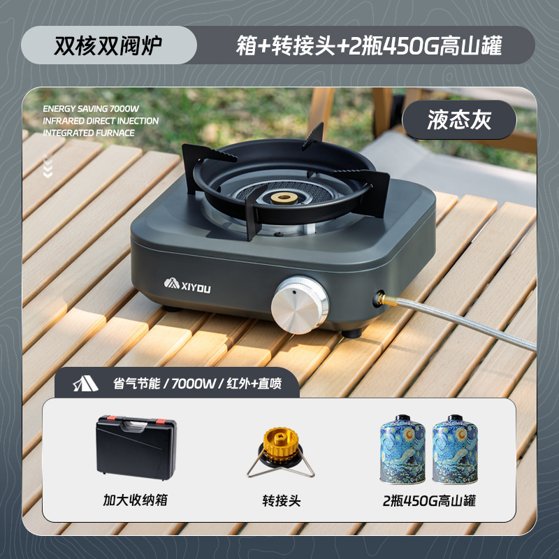 • 듀얼 코어 더블 밸브 퍼니스 [액체 회색] + 카세트 가스 탱크 4개