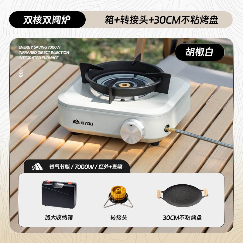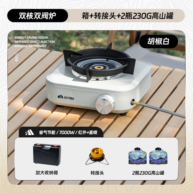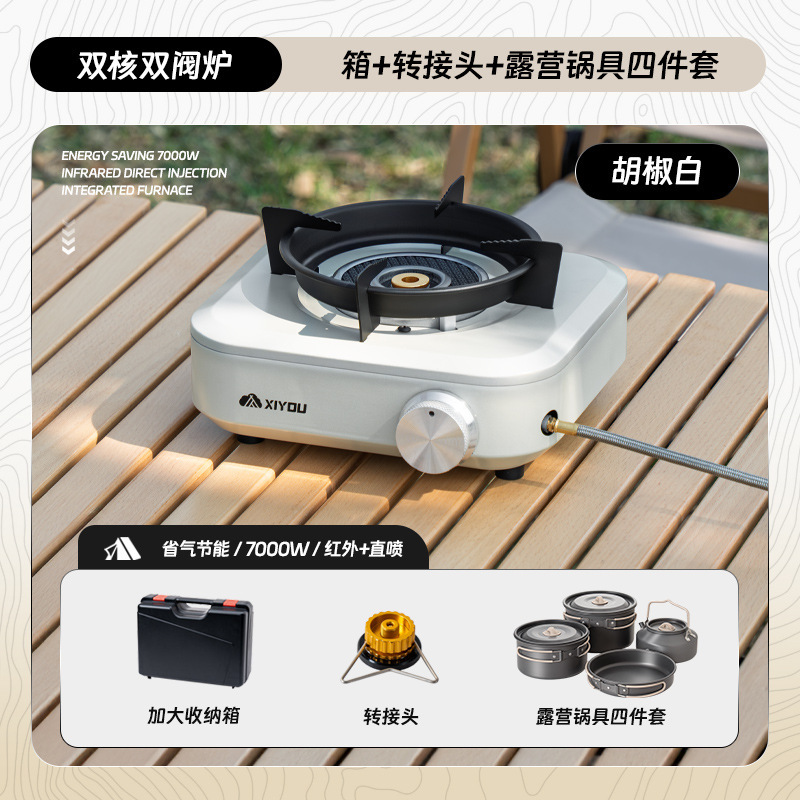 • 듀얼코어 더블밸브 스토브 [페퍼화이트] + 냄비 4종세트