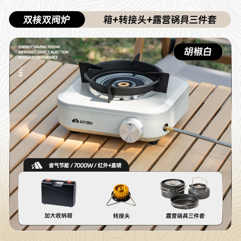 • 듀얼코어 더블밸브 스토브 [페퍼화이트] + 3피스 냄비세트