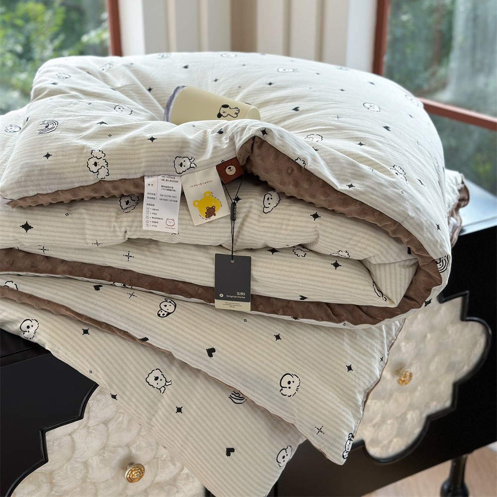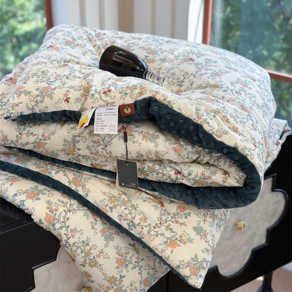13372 만화 작은 꽃 무늬 봄과 가을 이불 진정 비니 이불 따뜻한 플러스 벨벳 겨울 이불 코어스토어 가기