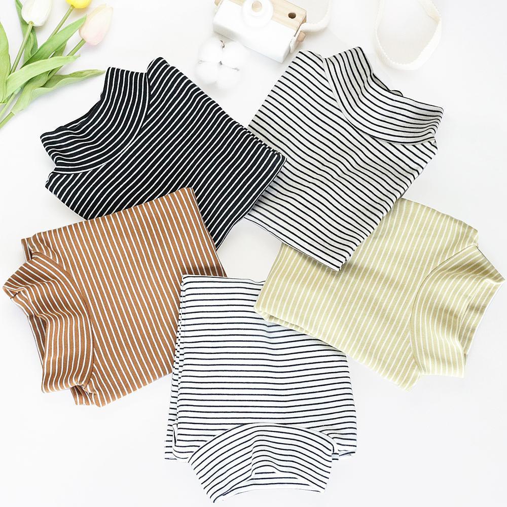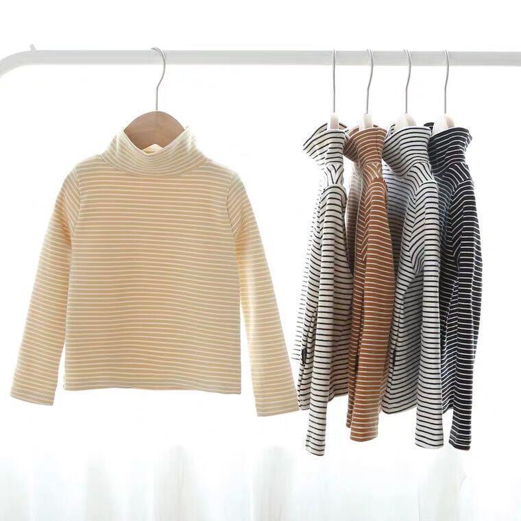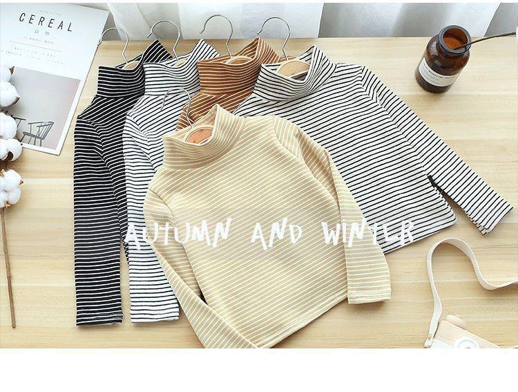 순면 아동용 터틀넥 셔츠 스트라이프 가을 겨울 소년 슬림 긴팔 티셔츠 소녀용, 중대형 아동용스토어 가기