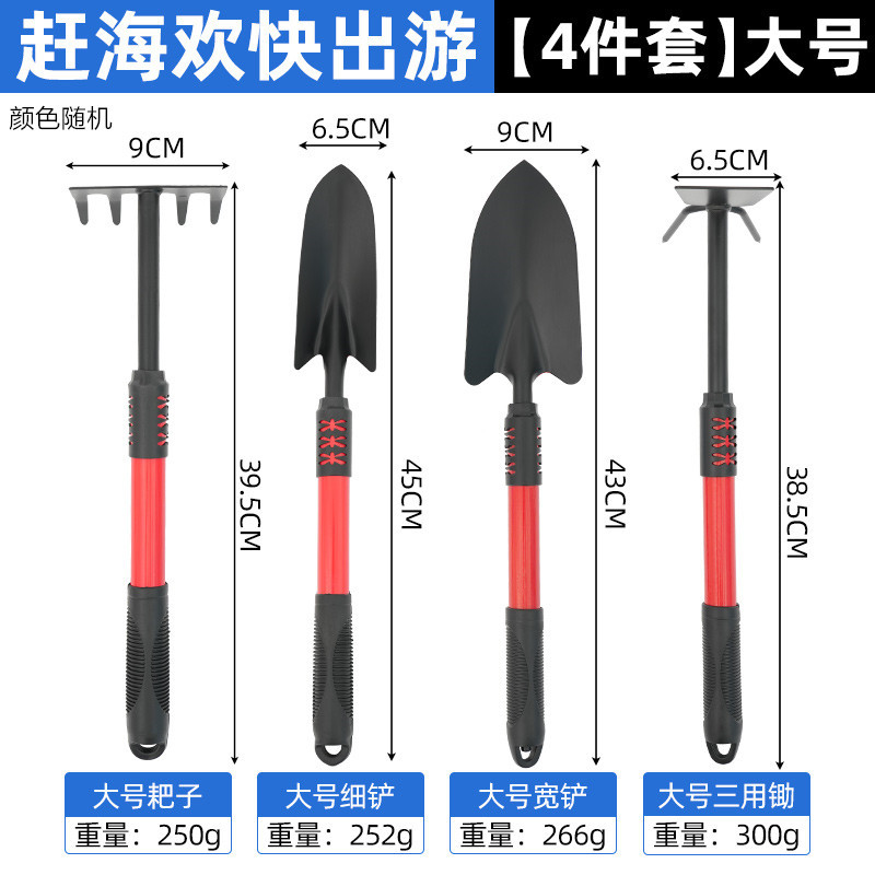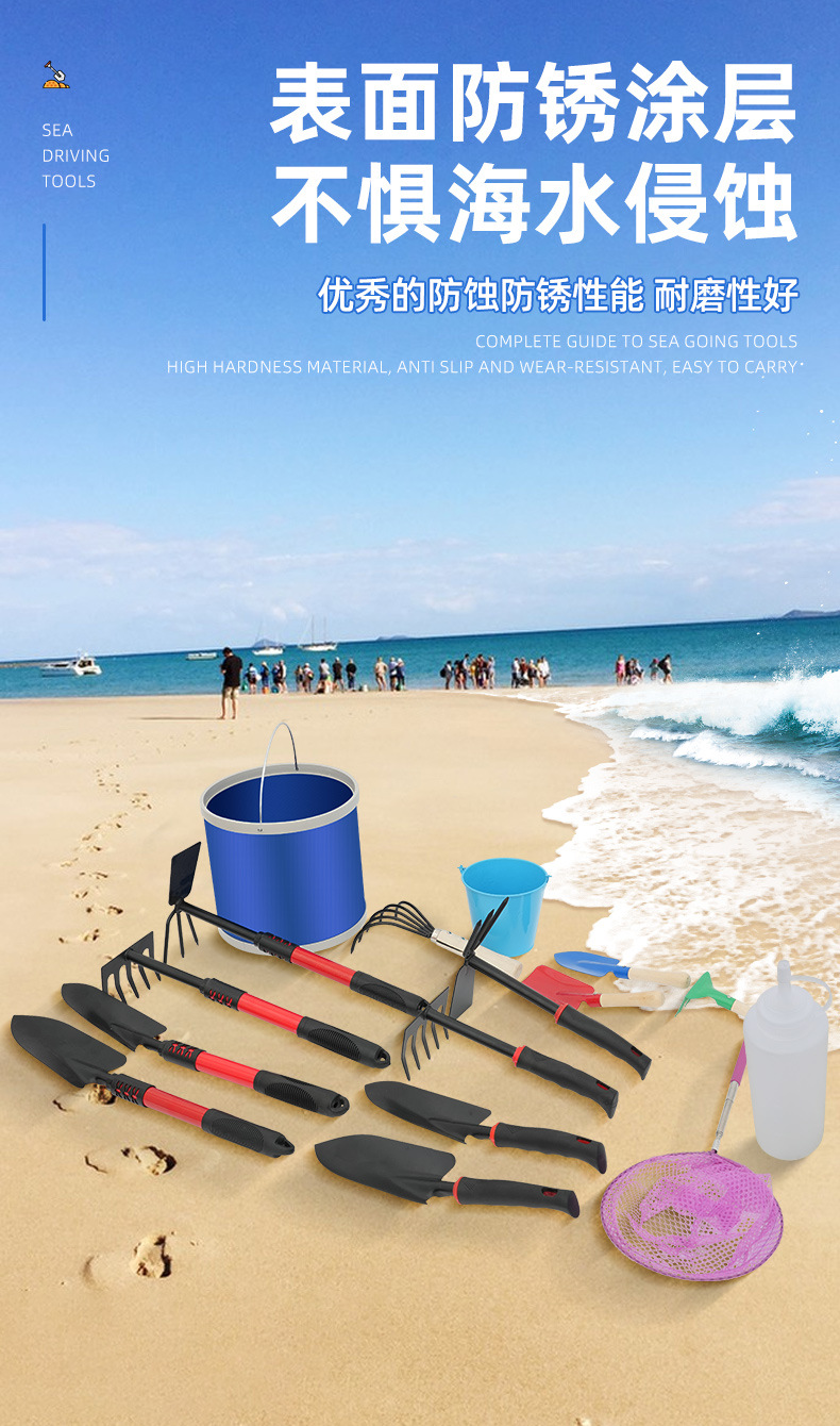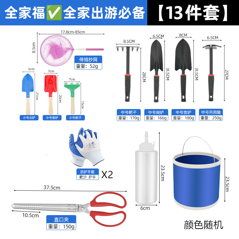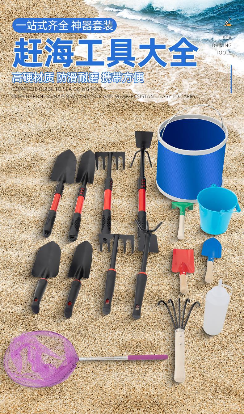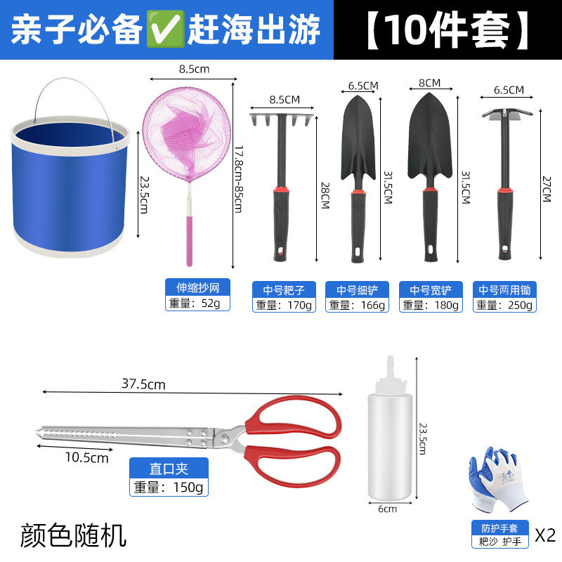 • 칸하이 4종 세트(모래파기 삽 + 조개 다섯개 갈퀴 + 게 집게 + 접이식 물통)