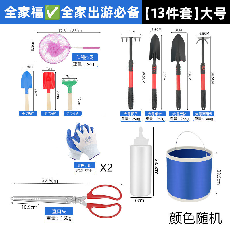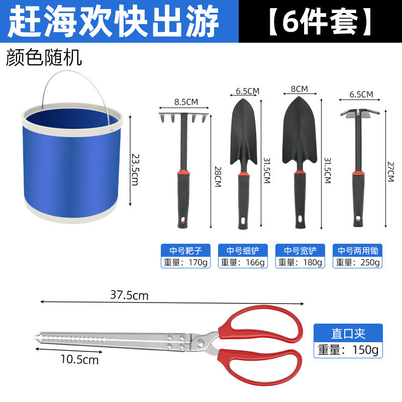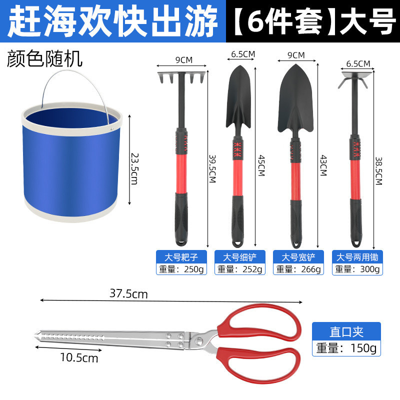 • 칸하이 4종 세트(모래삽+조개다섯개 갈퀴+게집게+접이식 물통) 대형 사이즈
