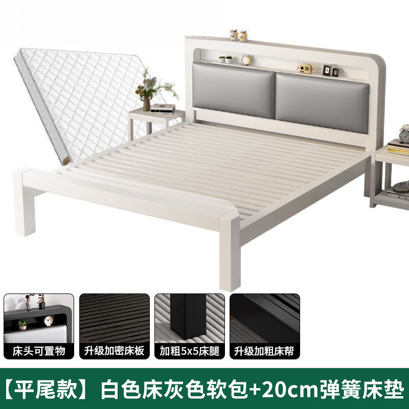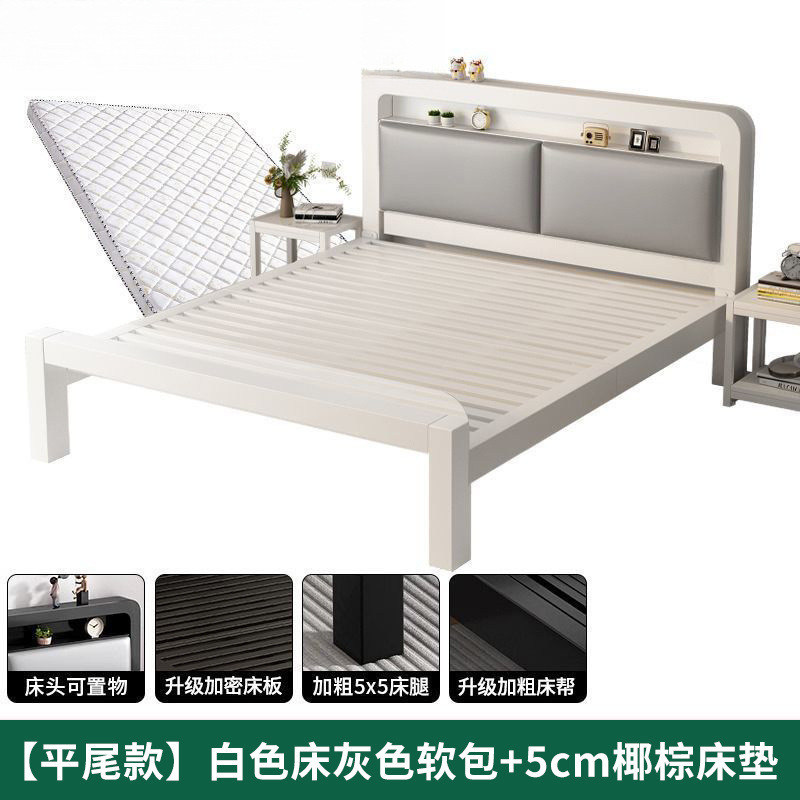 • 플랫테일 스타일 - 유백색 네이키드 침대 + 5cm 매트리스 [두꺼운 회색 소프트 등받이]