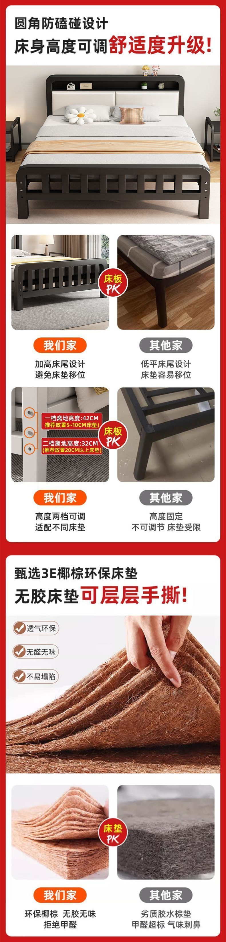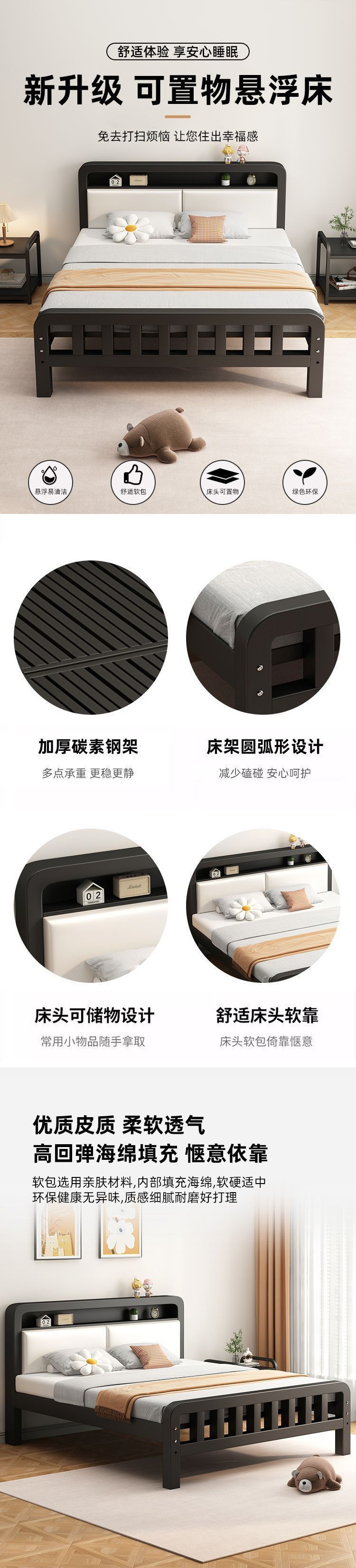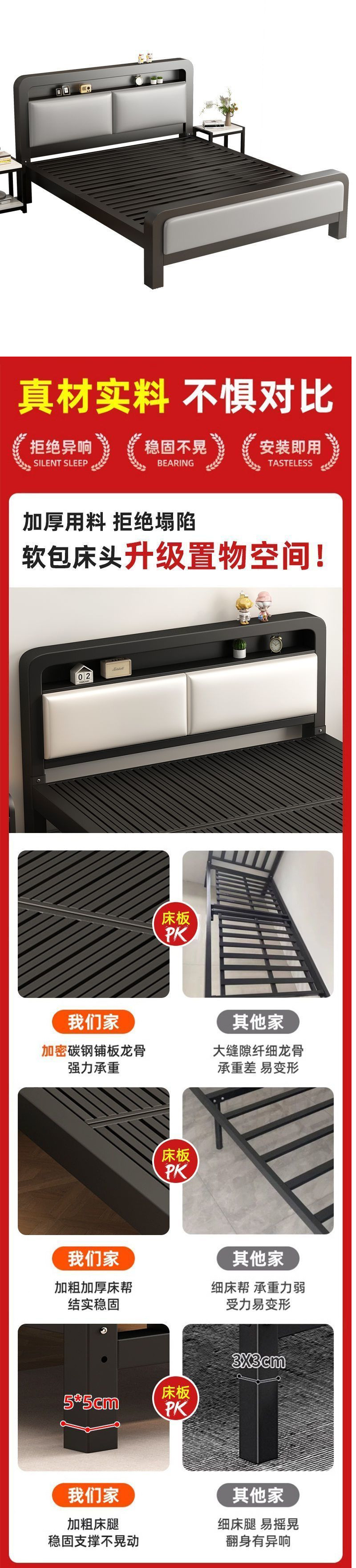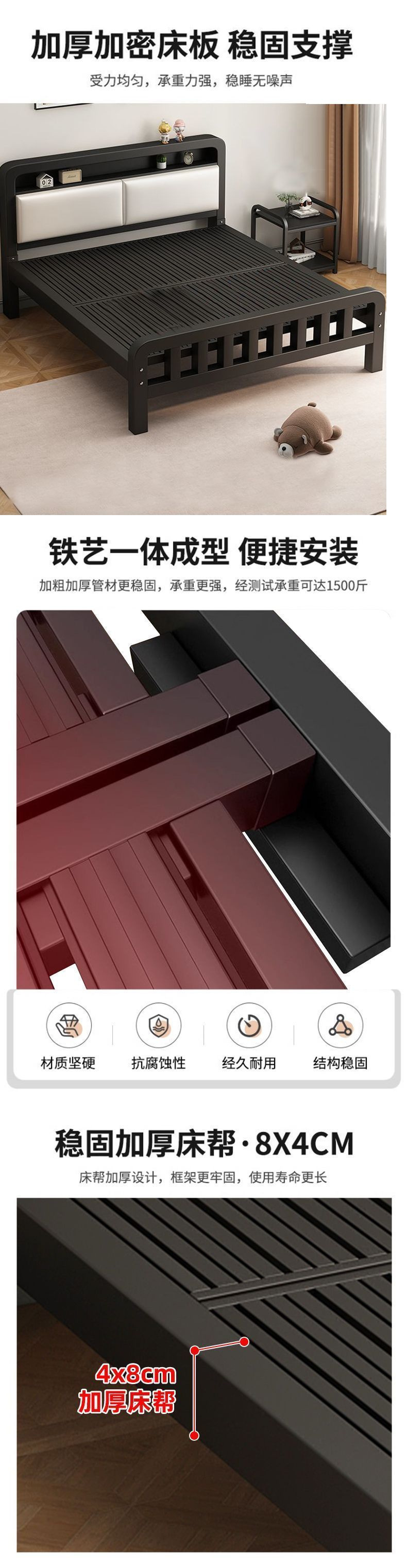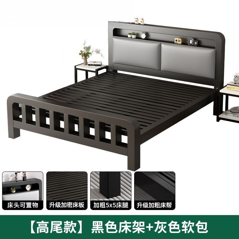 유럽식 철제 침대 1.8m 강화 및 두꺼운 더블 침대 1m 가정용 침대 스테인레스 스틸 임대 주택 철제 프레임 침대스토어 가기