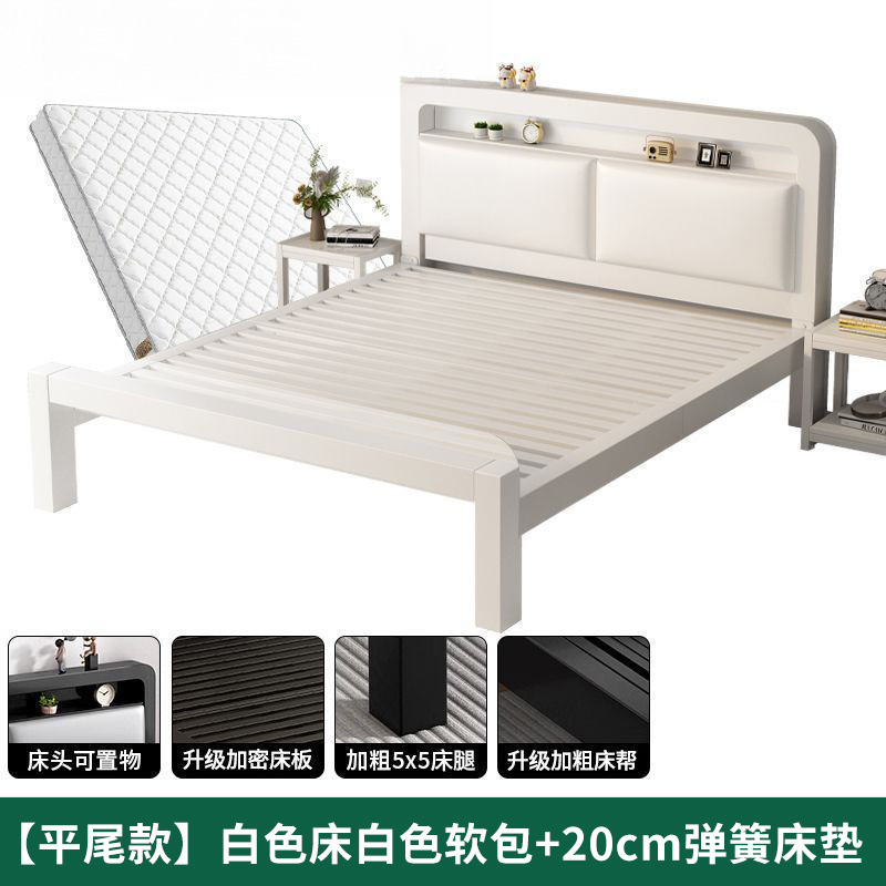 • 플랫테일 스타일 - 밀크 화이트 네이키드 침대 [두꺼운 화이트 소프트 등받이]