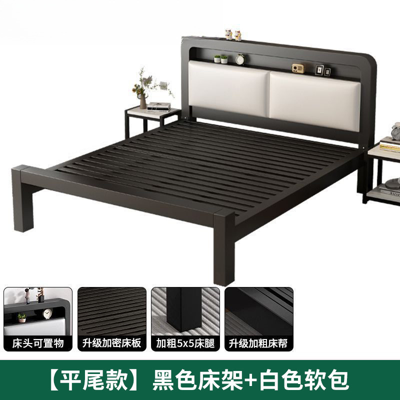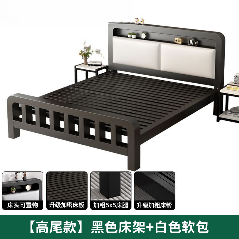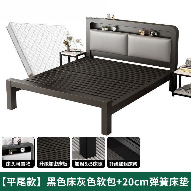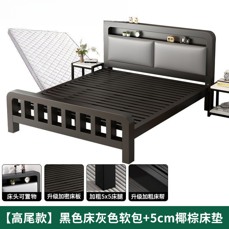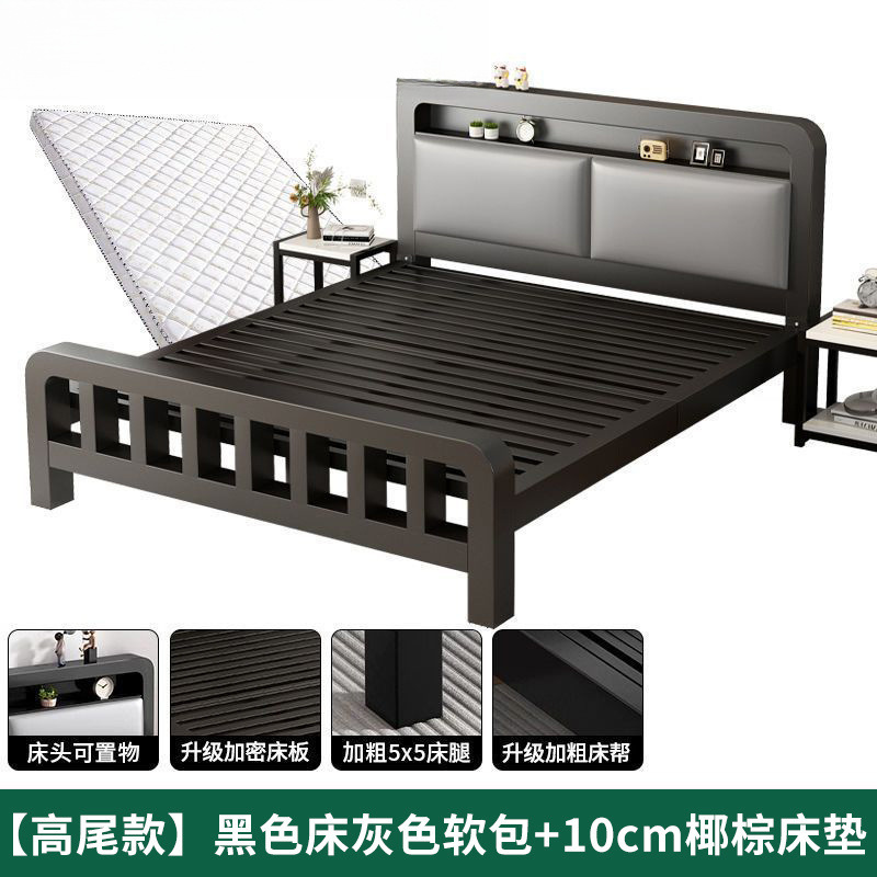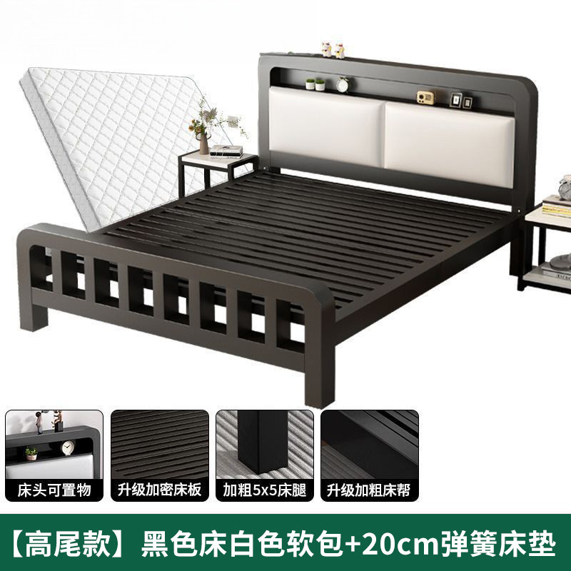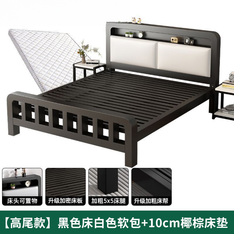 유럽식 철제 침대 1.8m 강화 및 두꺼운 더블 침대 1m 가정용 침대 스테인레스 스틸 임대 주택 철제 프레임 침대