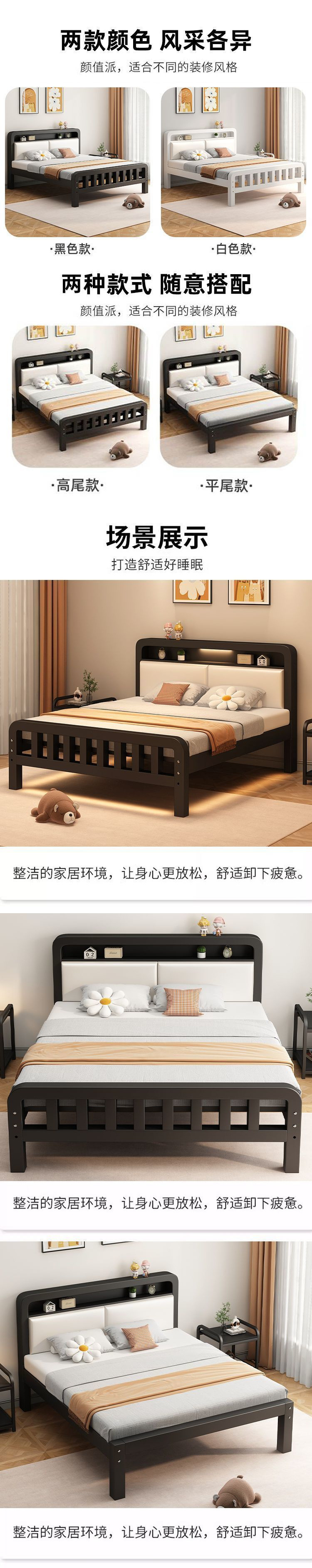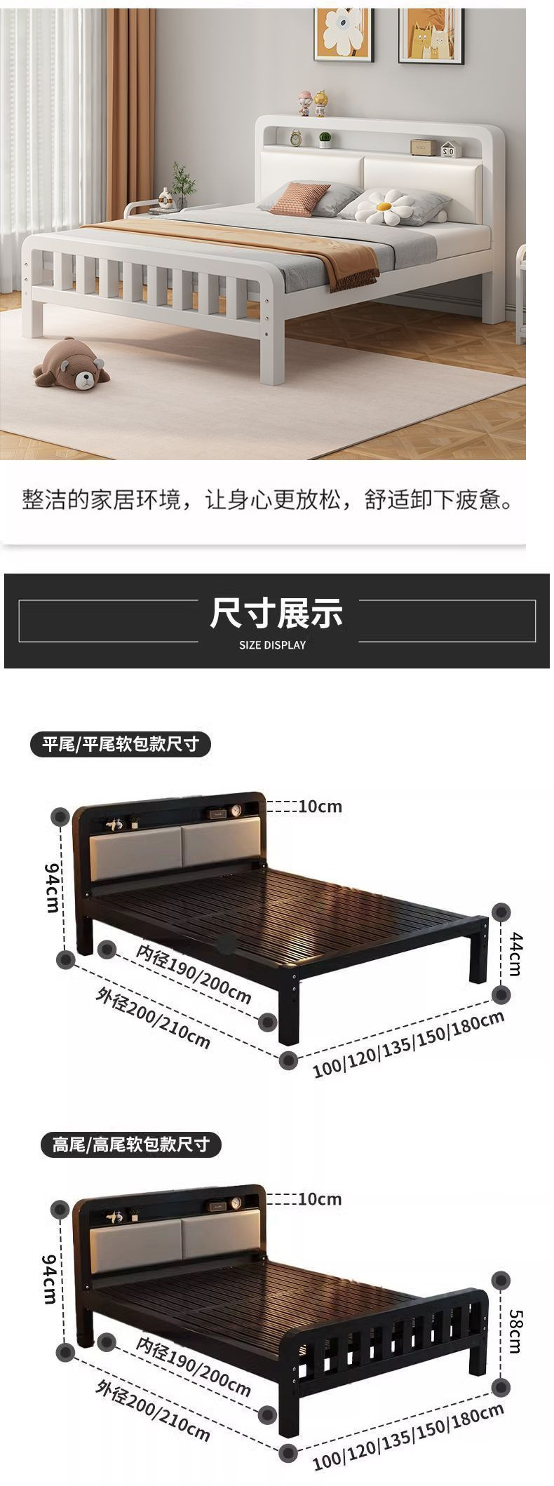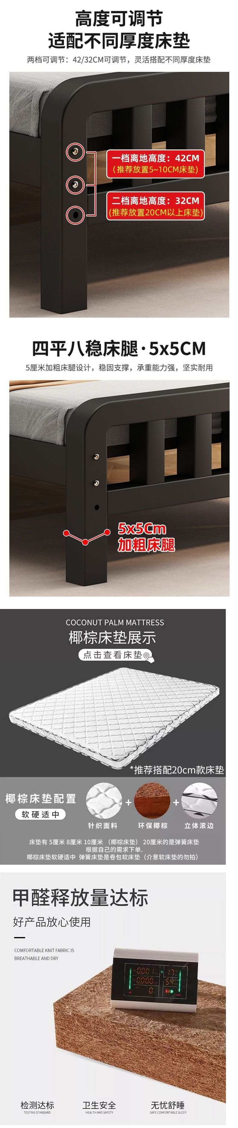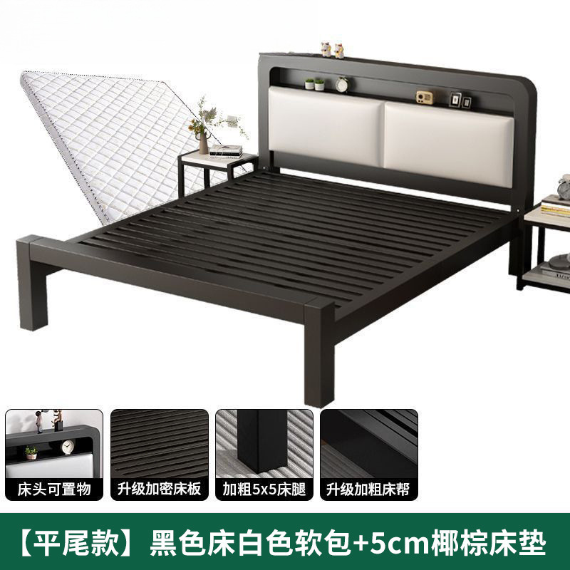 유럽식 철제 침대 1.8m 강화 및 두꺼운 더블 침대 1m 가정용 침대 스테인레스 스틸 임대 주택 철제 프레임 침대