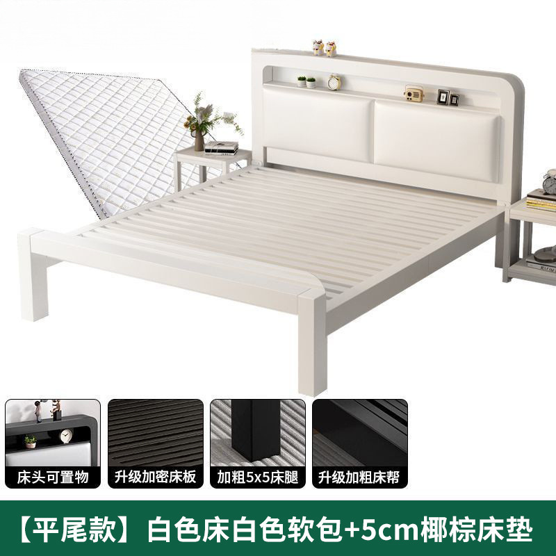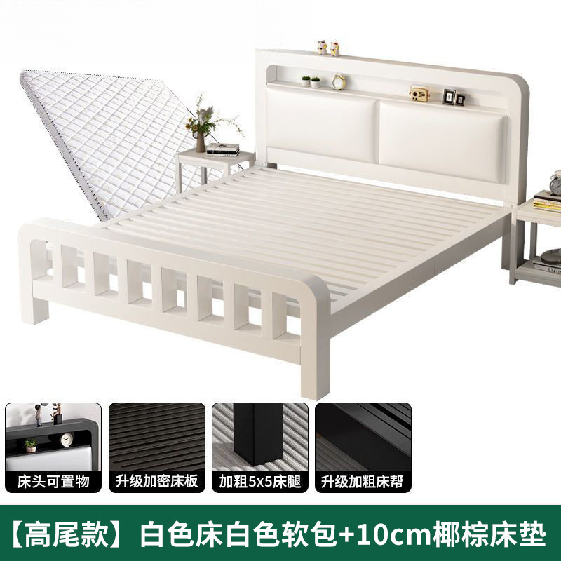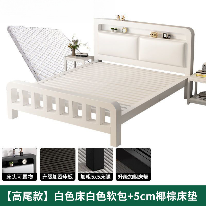 • 하이엔드 모델 - 밀크 화이트 네이키드 침대 + 5cm 매트리스 [두꺼운 화이트 소프트 등받이]