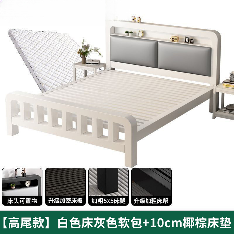 • 하이엔드 모델 - 밀크 화이트 네이키드 침대 + 5cm 매트리스 [두꺼운 회색 소프트 등받이]