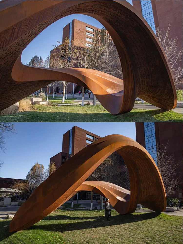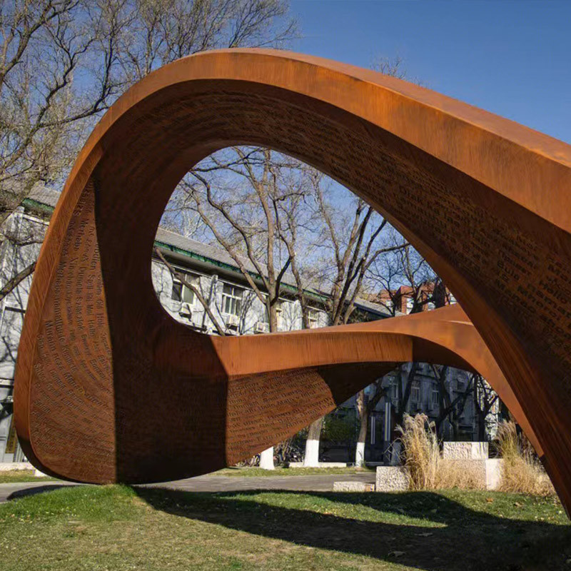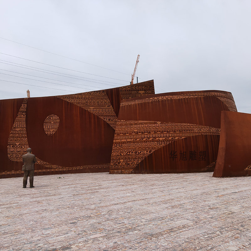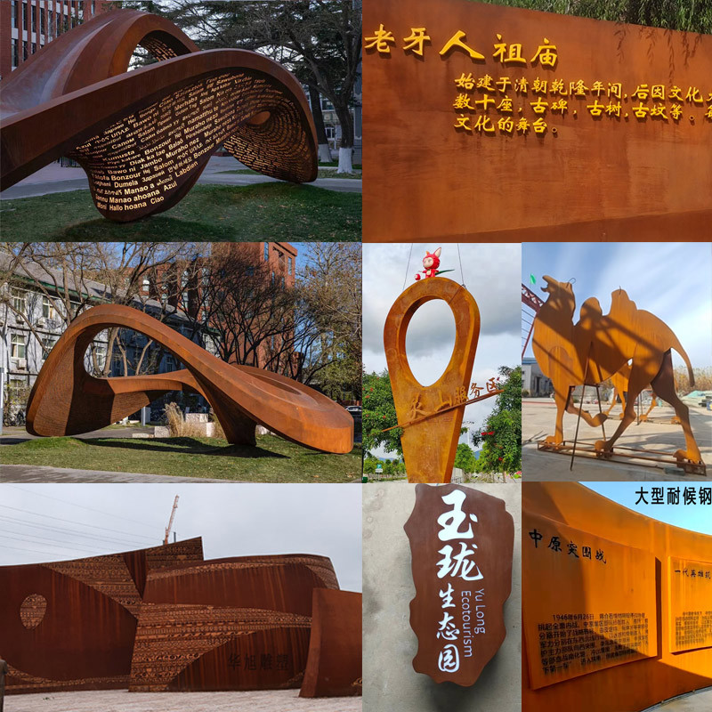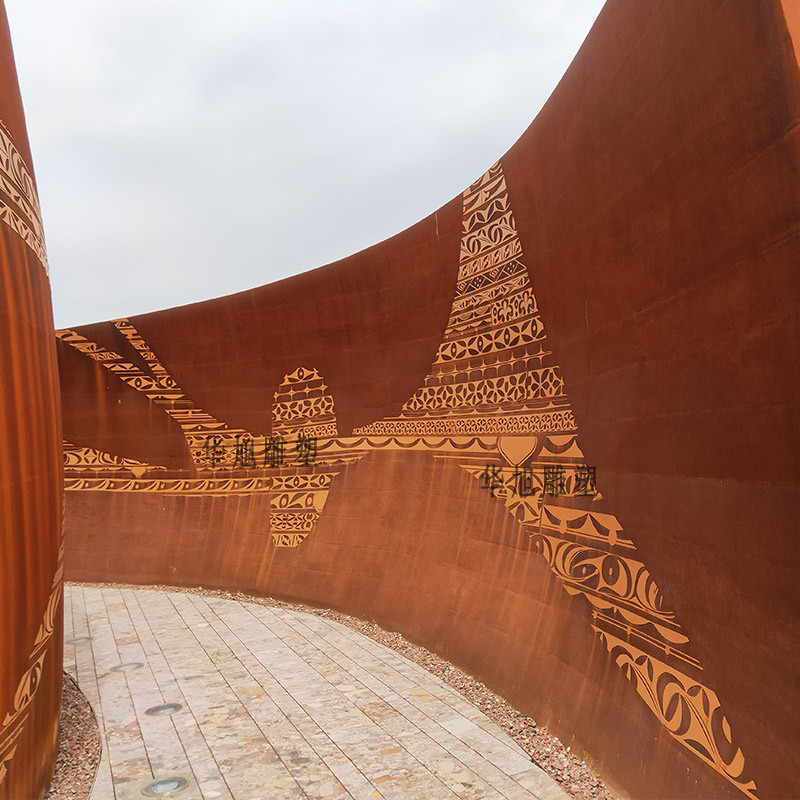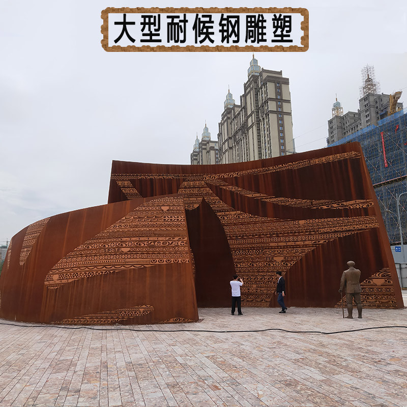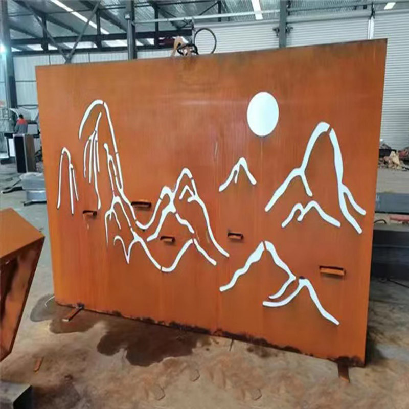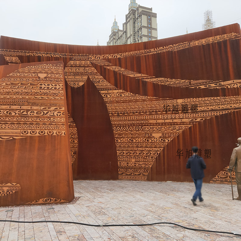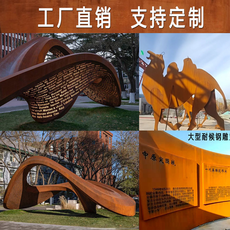 대형 스테인레스 스틸 내후성 강철 양각 풍경 벽 긴 복도 중공 붉은 자수 녹 철판 낙타 야외 조각 장식품