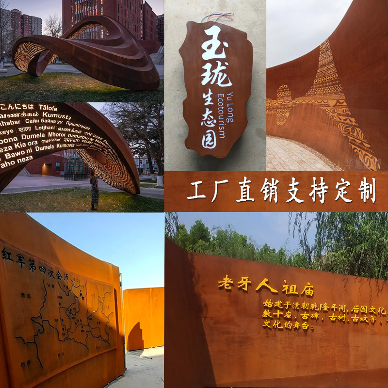 대형 스테인레스 스틸 내후성 강철 양각 풍경 벽 긴 복도 중공 붉은 자수 녹 철판 낙타 야외 조각 장식품스토어 가기