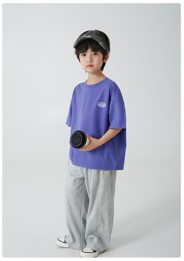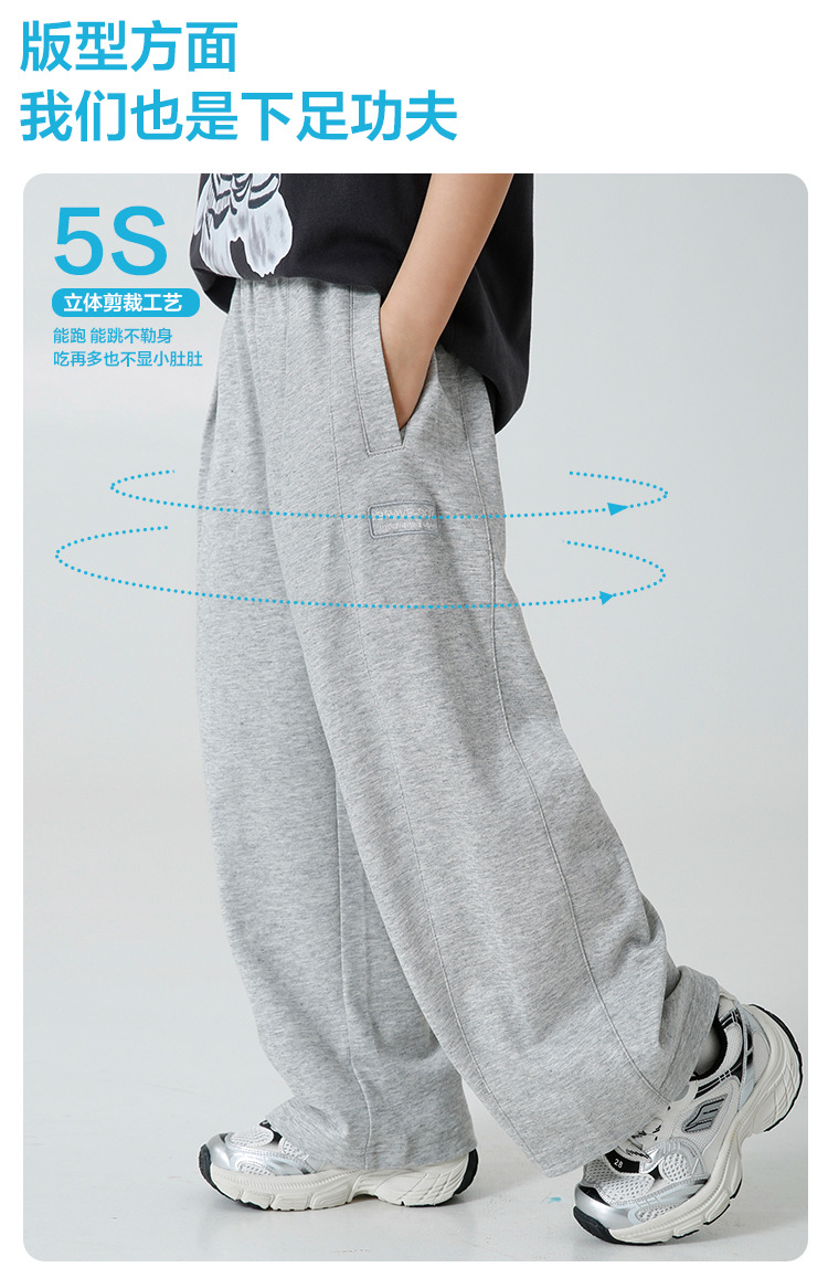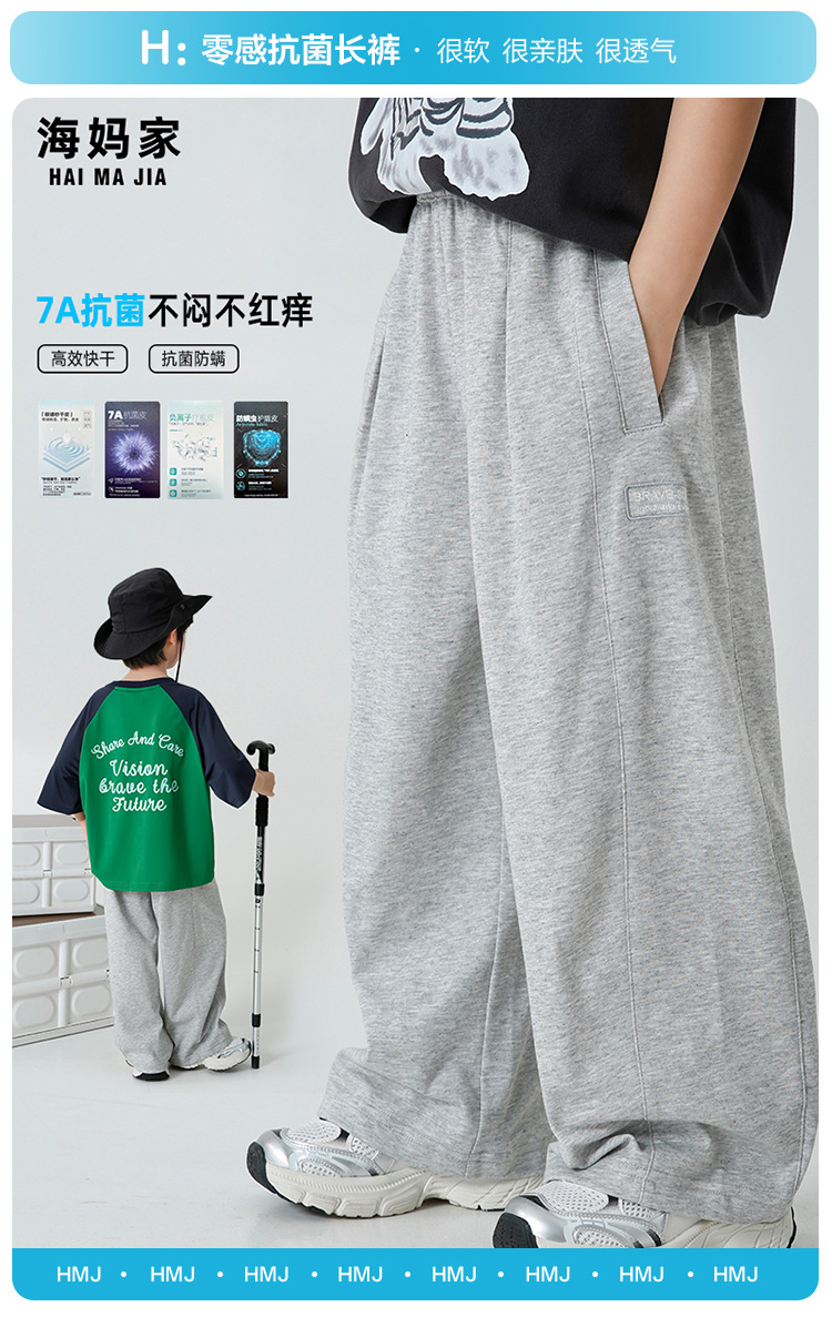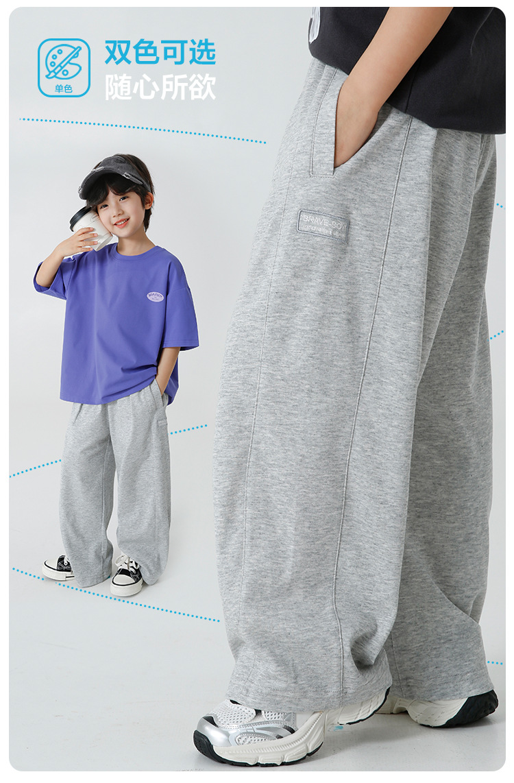 Haima의 2025 새 여름 소년 얇은 스포츠 바지 한국 스타일 여름 느슨한 넓은 다리 바지 중형 및 대형 어린이 스웨트 팬츠스토어 가기