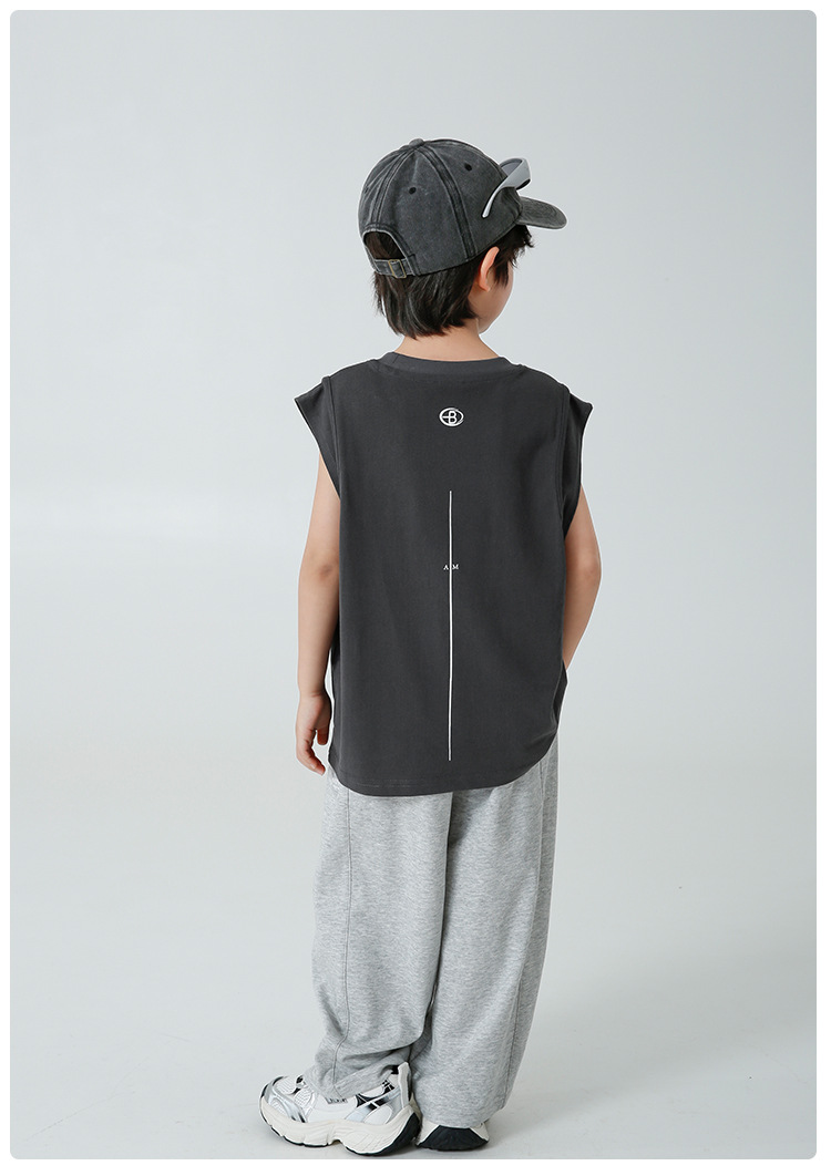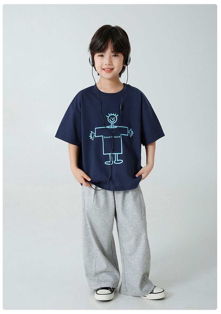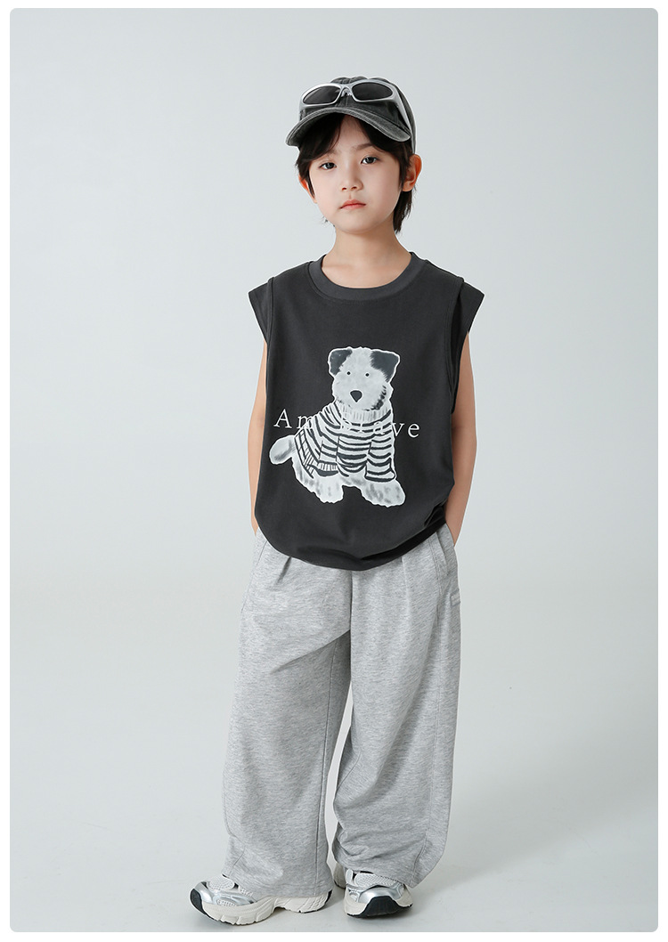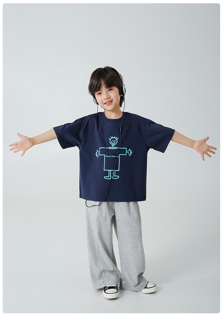 Haima의 2025 새 여름 소년 얇은 스포츠 바지 한국 스타일 여름 느슨한 넓은 다리 바지 중형 및 대형 어린이 스웨트 팬츠스토어 가기