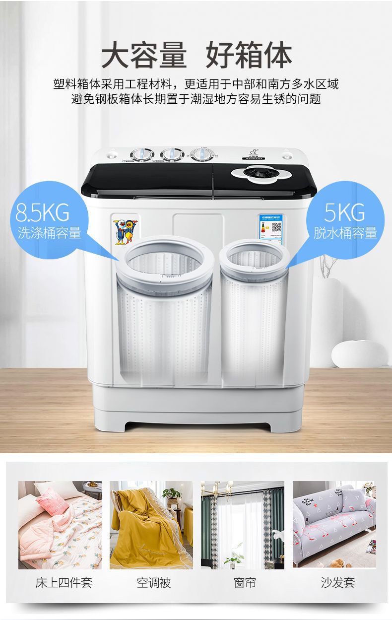 Xiaoya 브랜드 세탁 + 탈착 13.5kg 반자동 세탁기 구식 펄스 휠 이중 실린더 버킷 기숙사 홈 임대