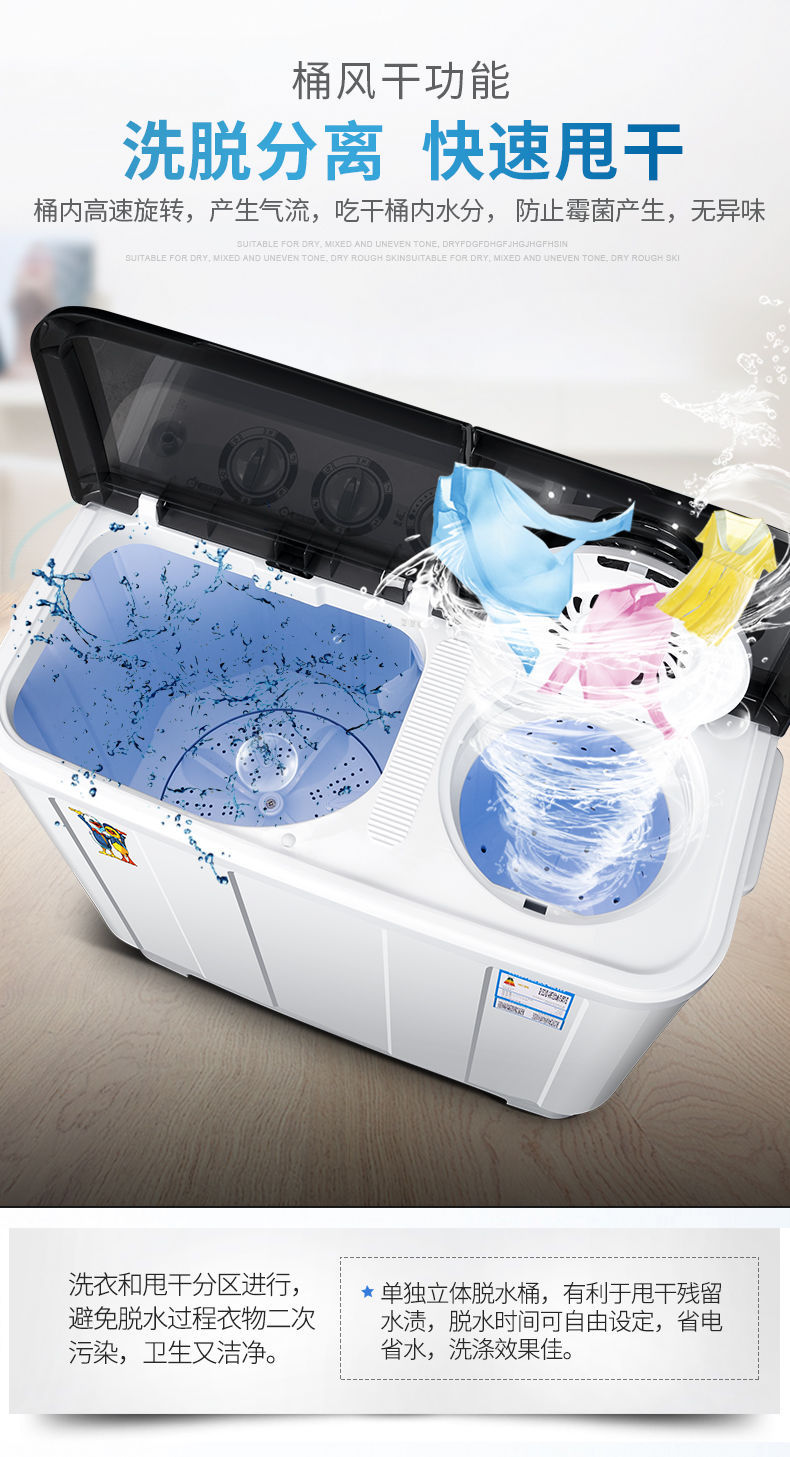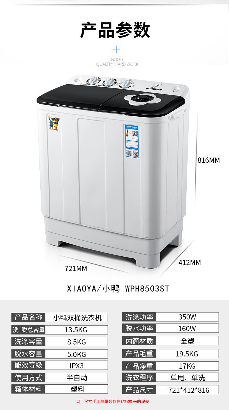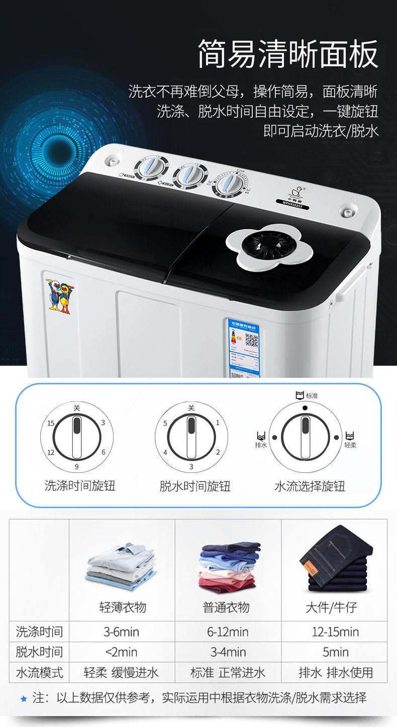 Xiaoya 브랜드 세탁 + 탈착 13.5kg 반자동 세탁기 구식 펄스 휠 이중 실린더 버킷 기숙사 홈 임대스토어 가기