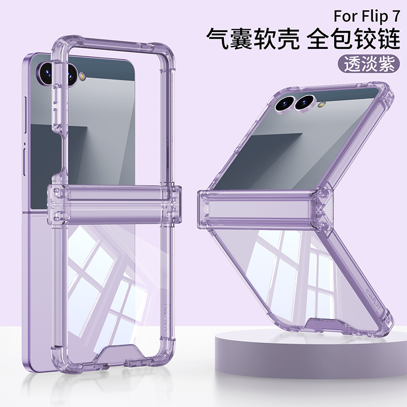 삼성 ZFlip7 휴대 전화 케이스에 적합 투명 아크릴 에어백 zflip7 간단한 링 보호 커버 세련되고 얇은스토어 가기