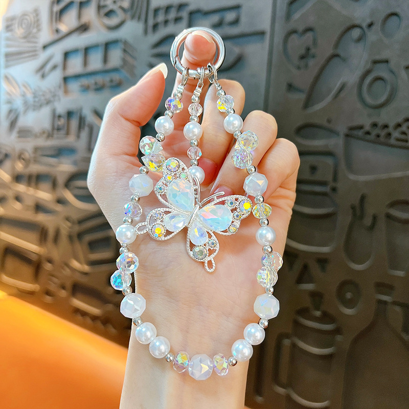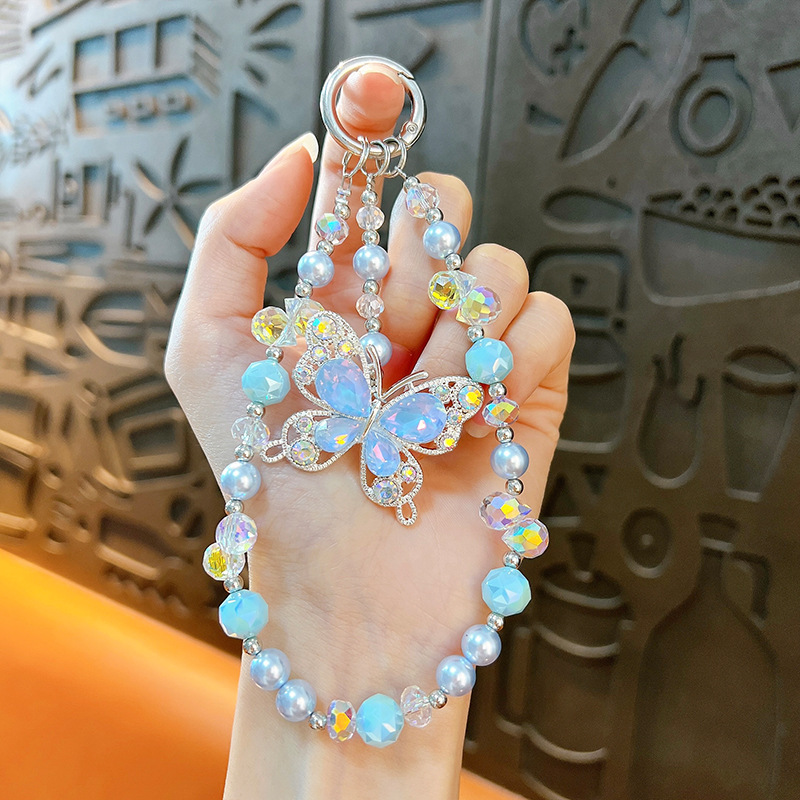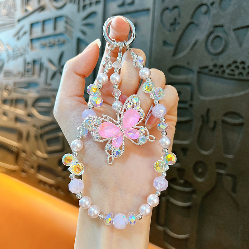 창조적 인 크리스탈 나비 구슬 휴대 전화 체인 키 체인 절묘한 가방 액세서리 휴대 전화 케이스 펜던트 작은 선물 도매