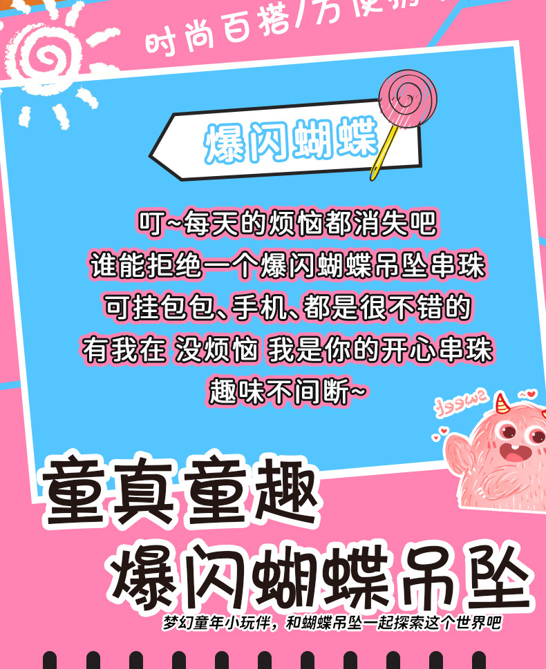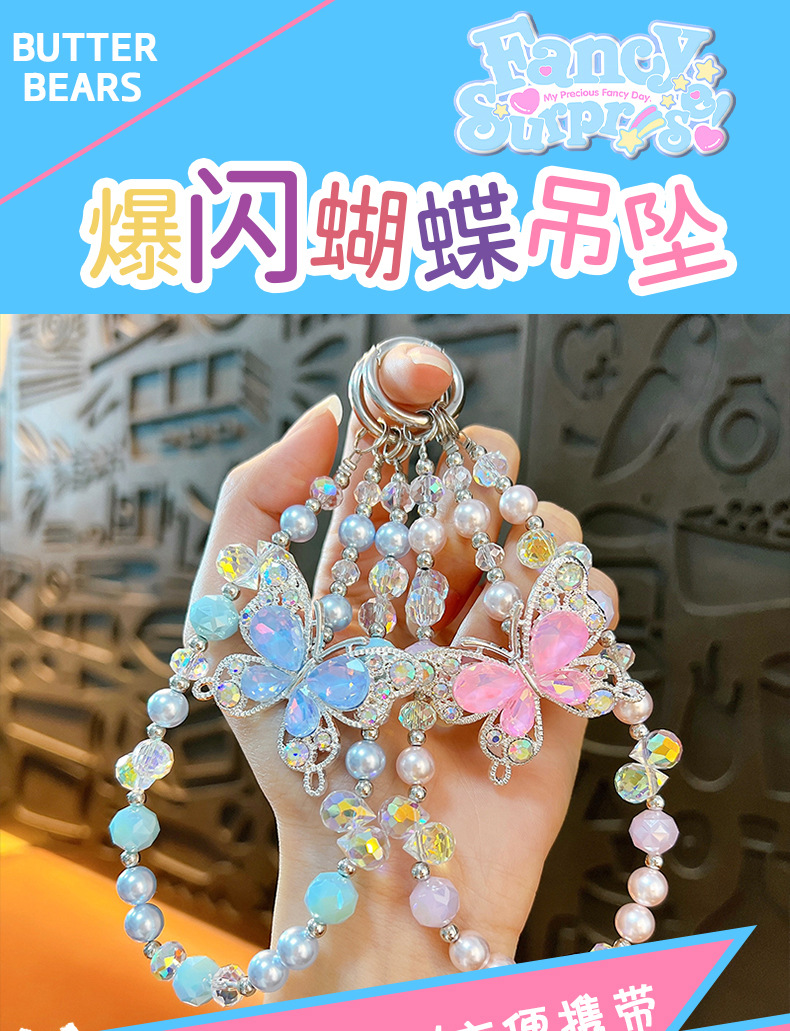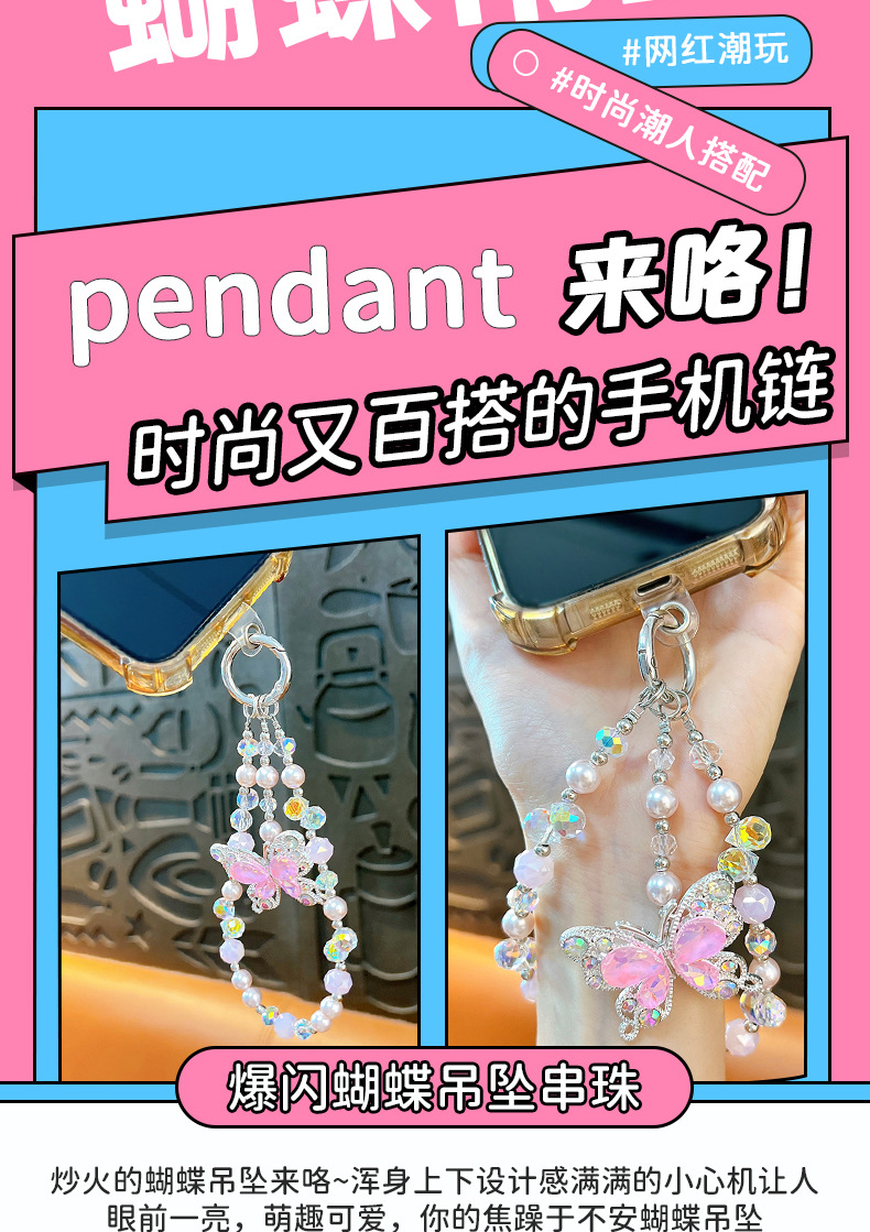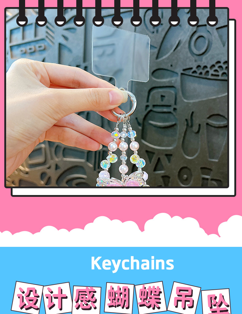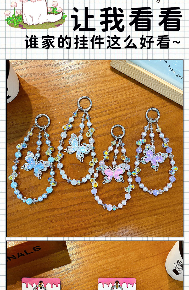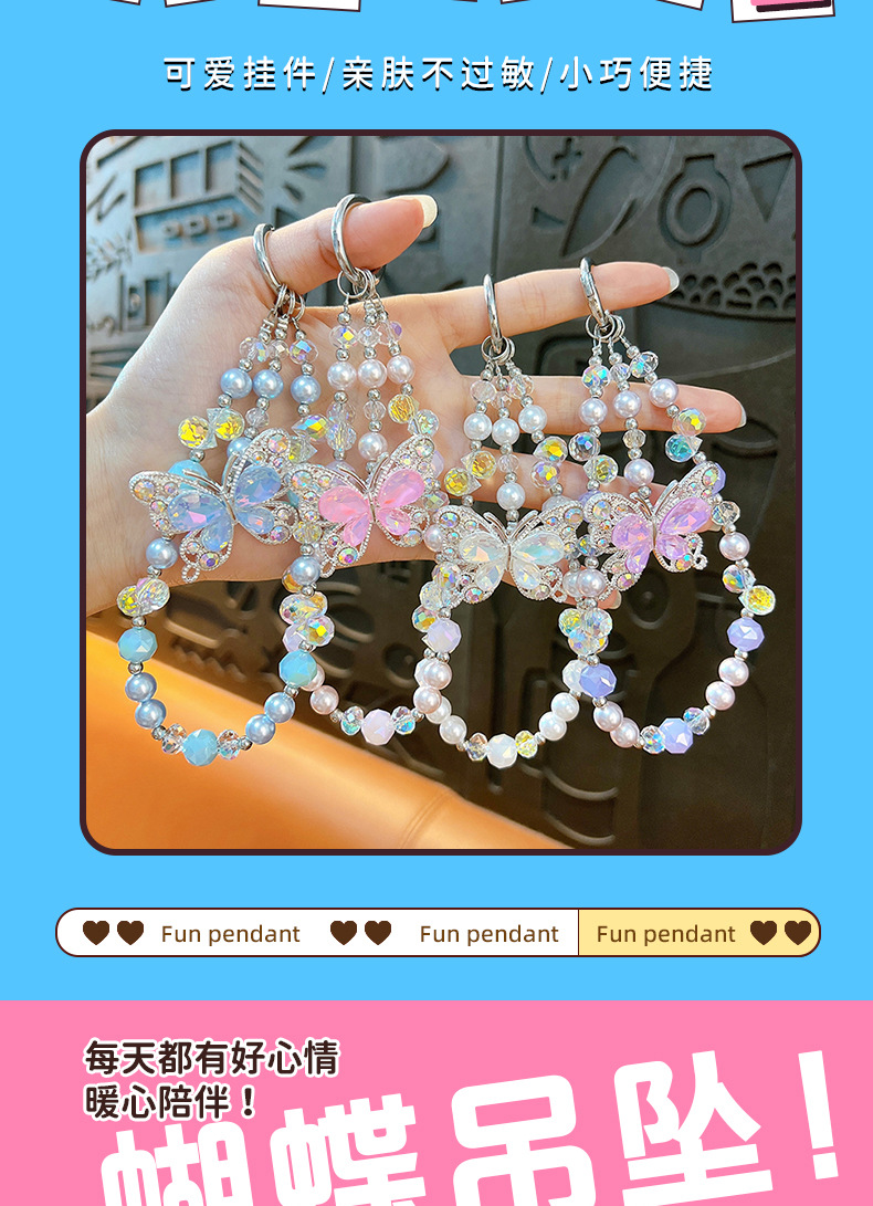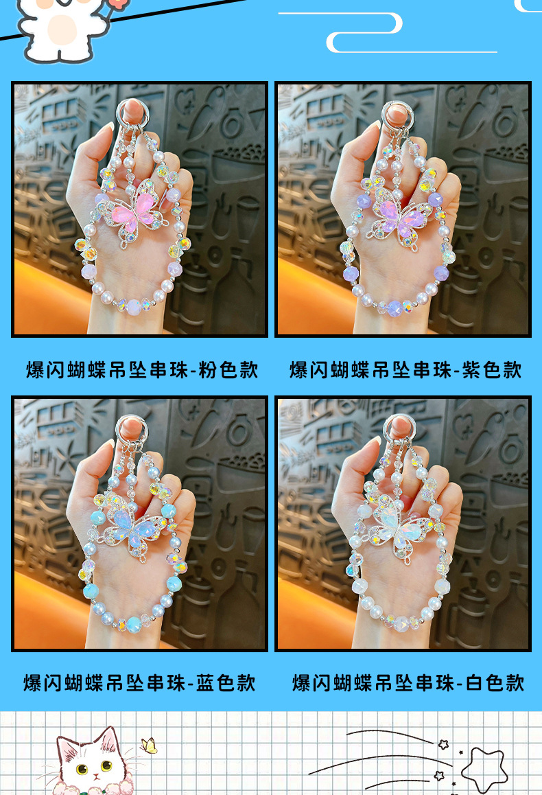 • 핑크 합금 나비 비즈 휴대폰 체인