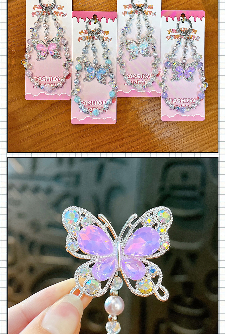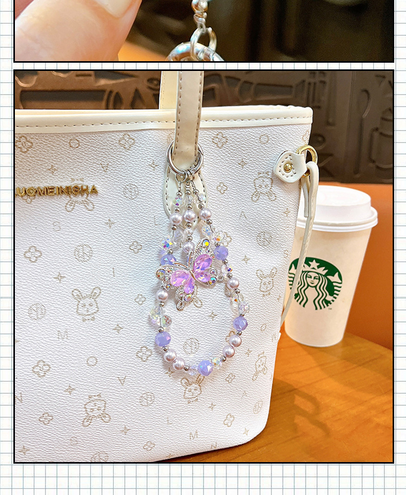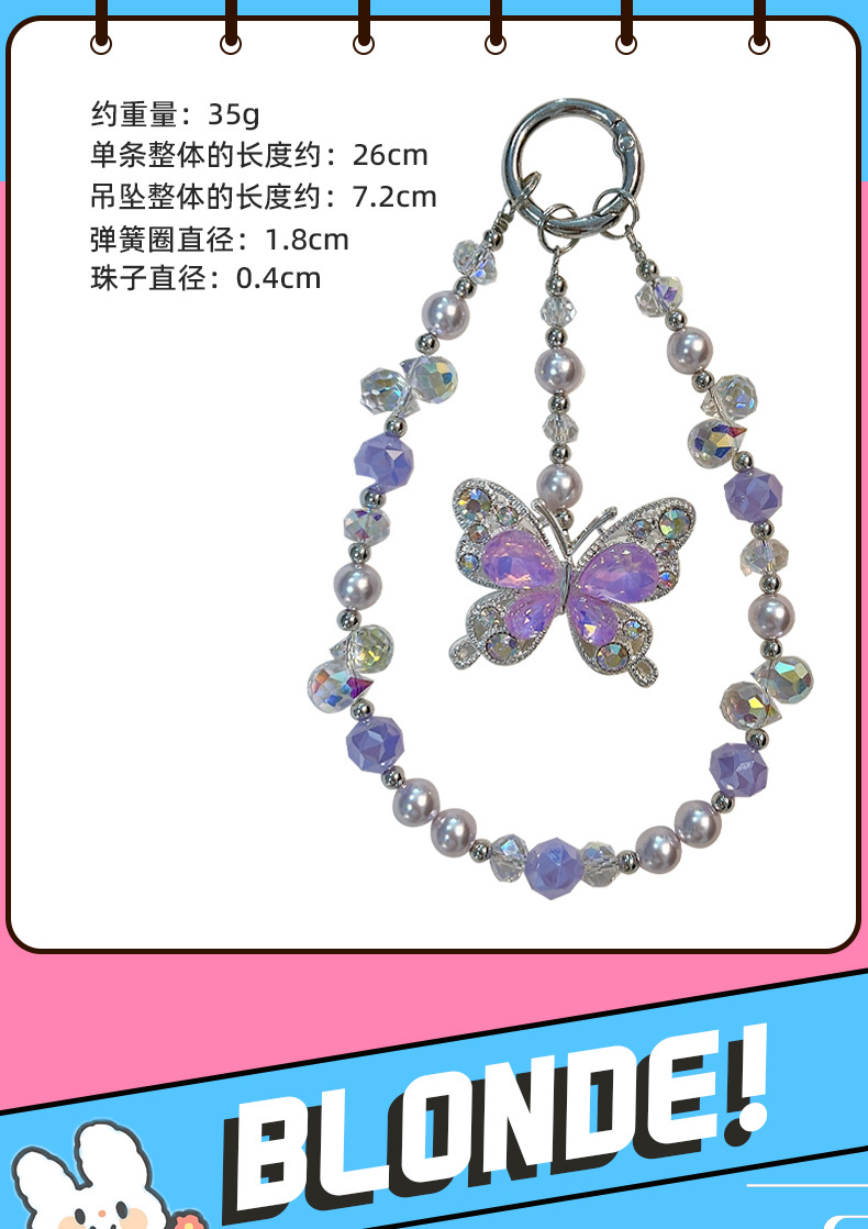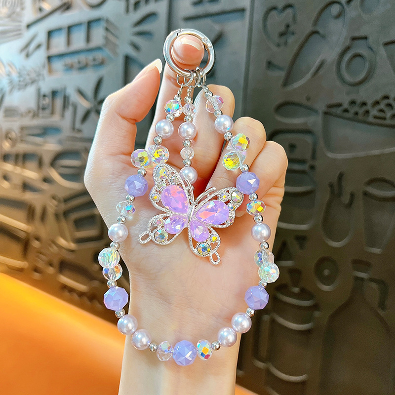 • 보라색 합금 나비 비즈 휴대폰 체인