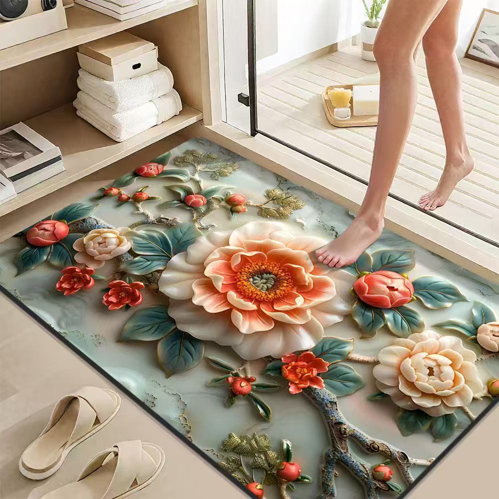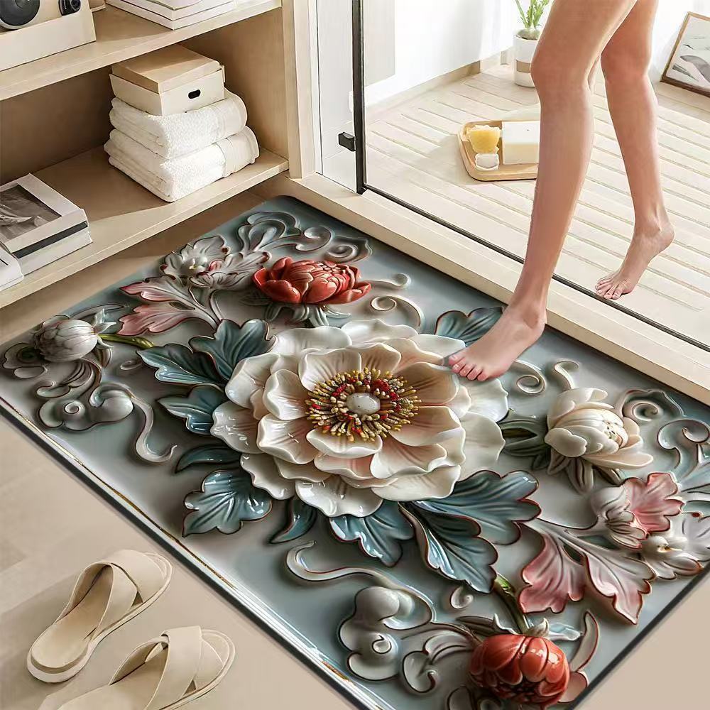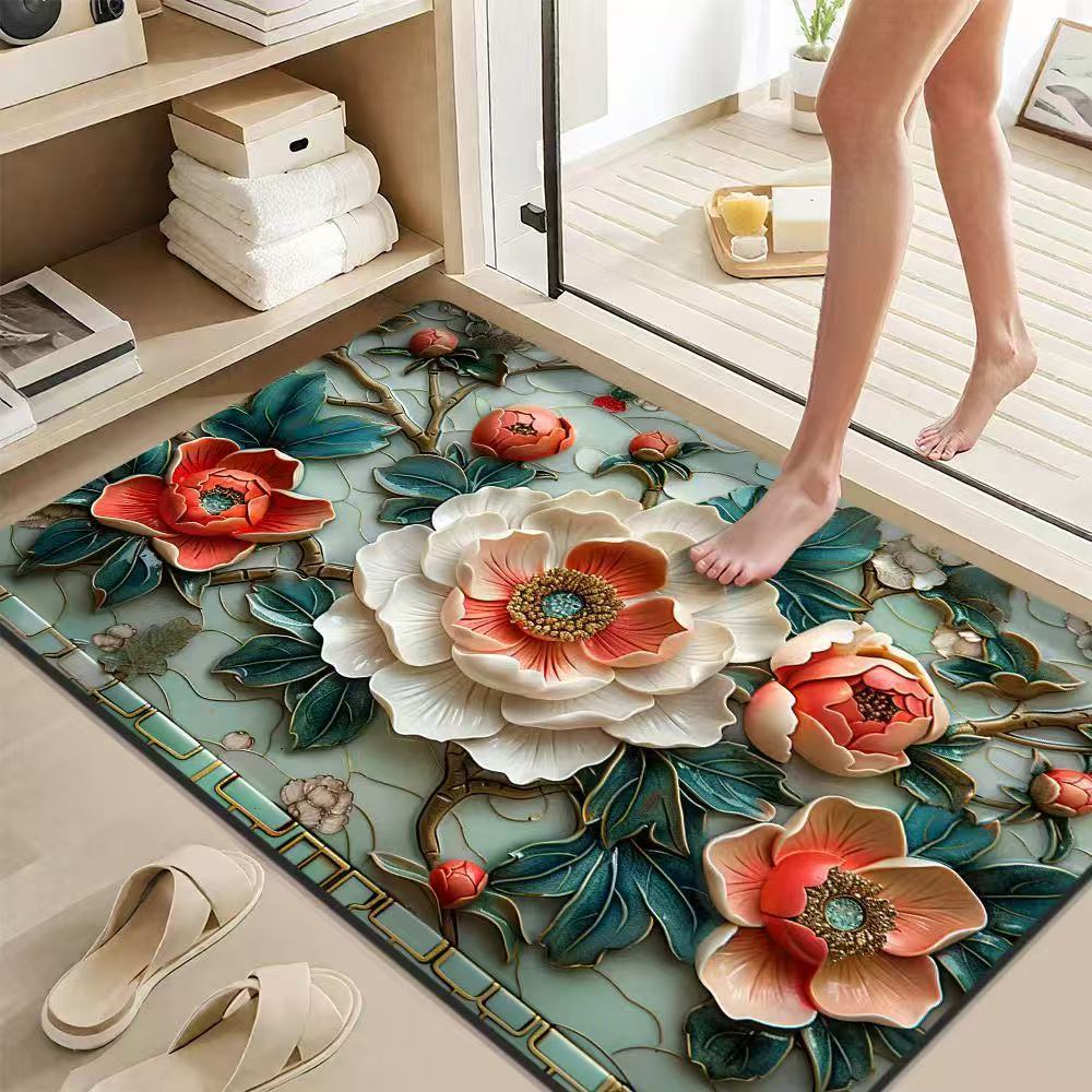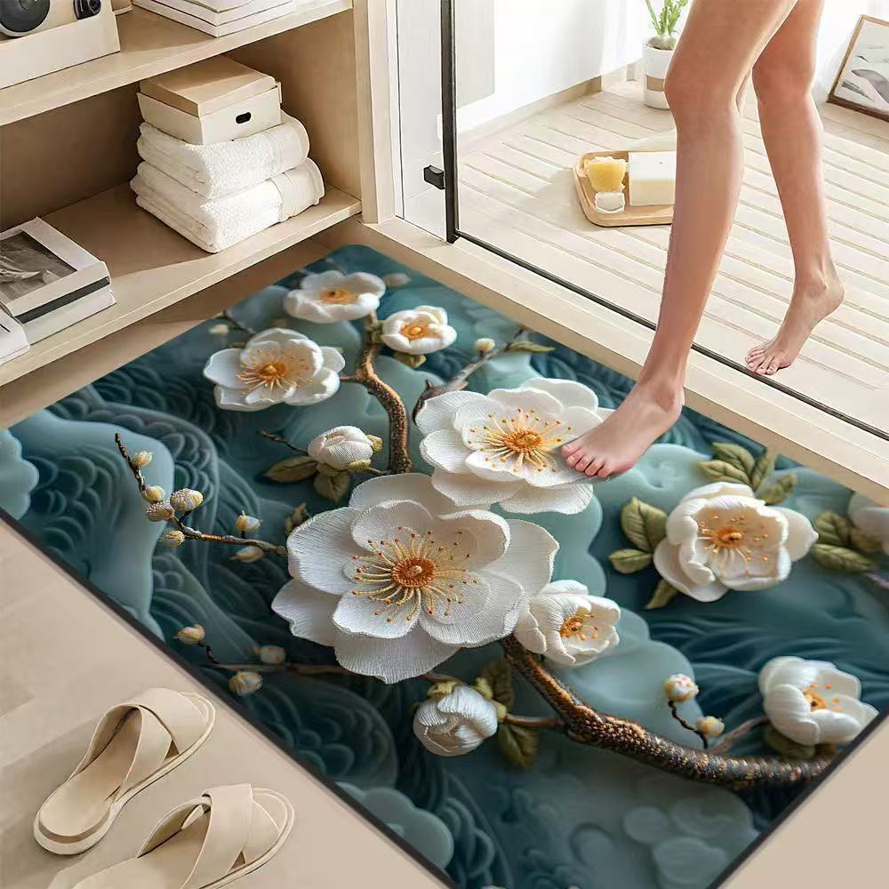 가정용 욕실 문용 중국식 꽃무늬 바닥 매트, 흡수성 및 속건성 발 매트, 얼룩 방지 및 미끄럼 방지 발 매트