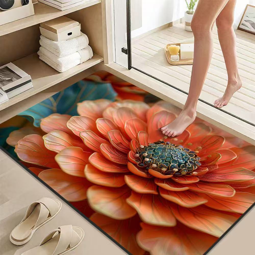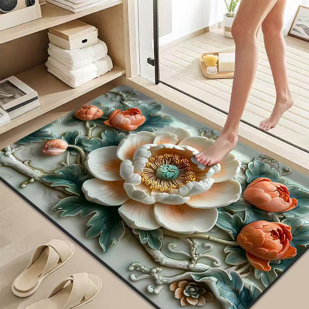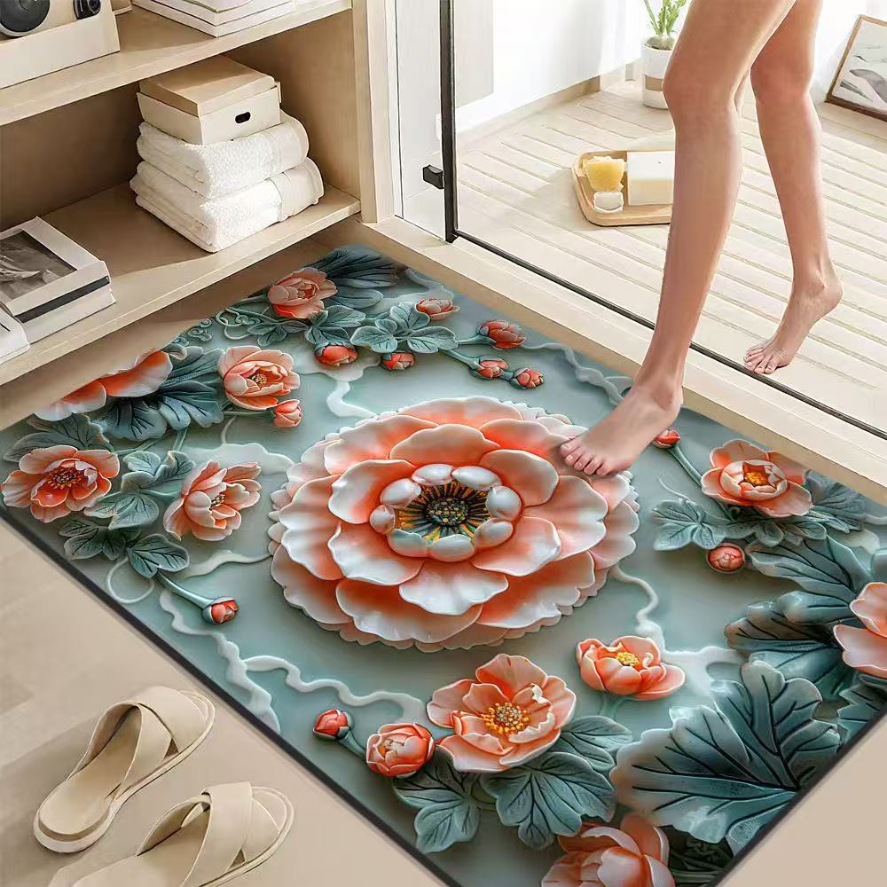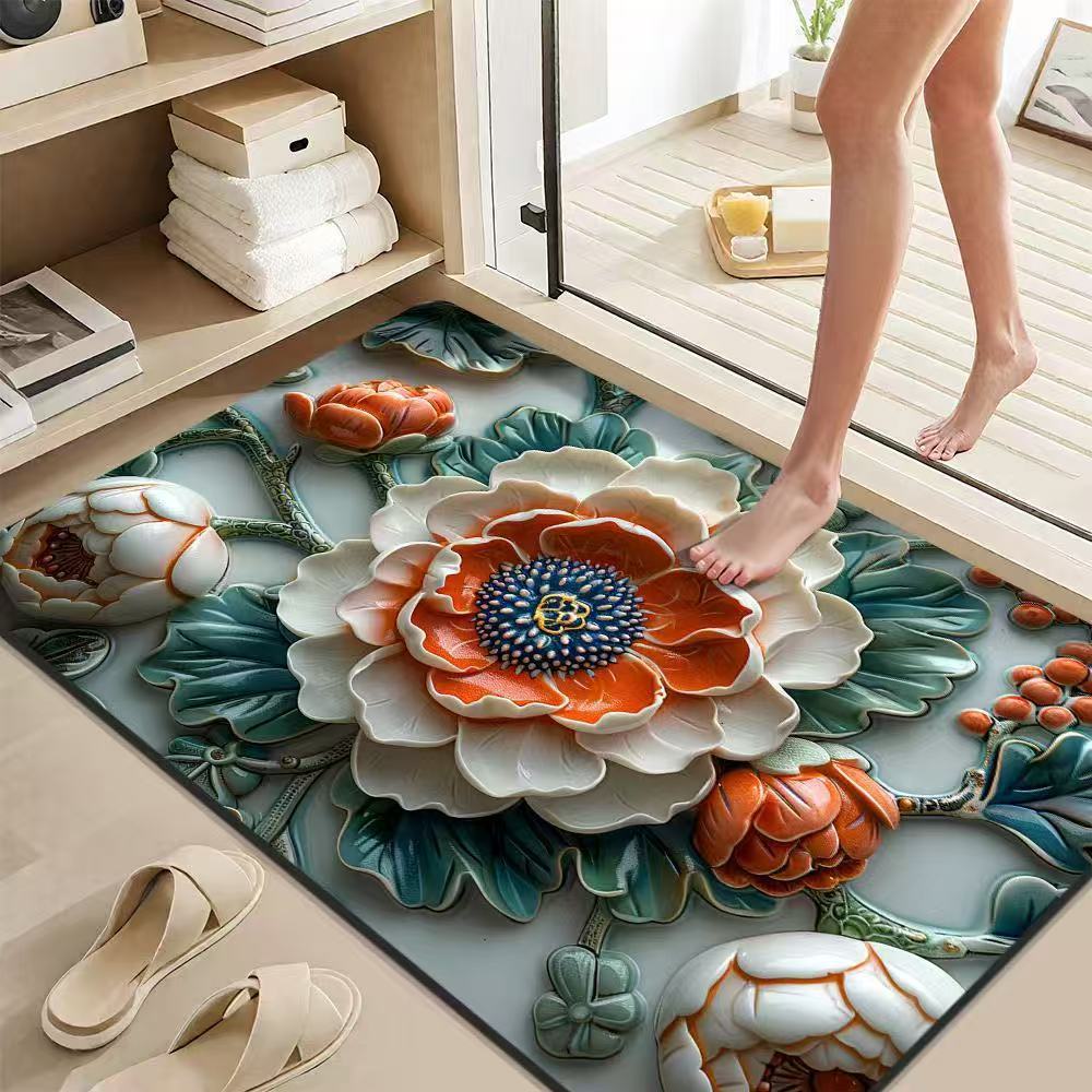 가정용 욕실 문용 중국식 꽃무늬 바닥 매트, 흡수성 및 속건성 발 매트, 얼룩 방지 및 미끄럼 방지 발 매트