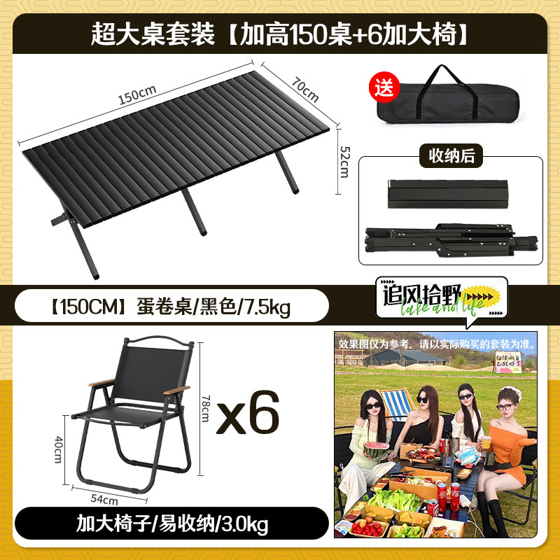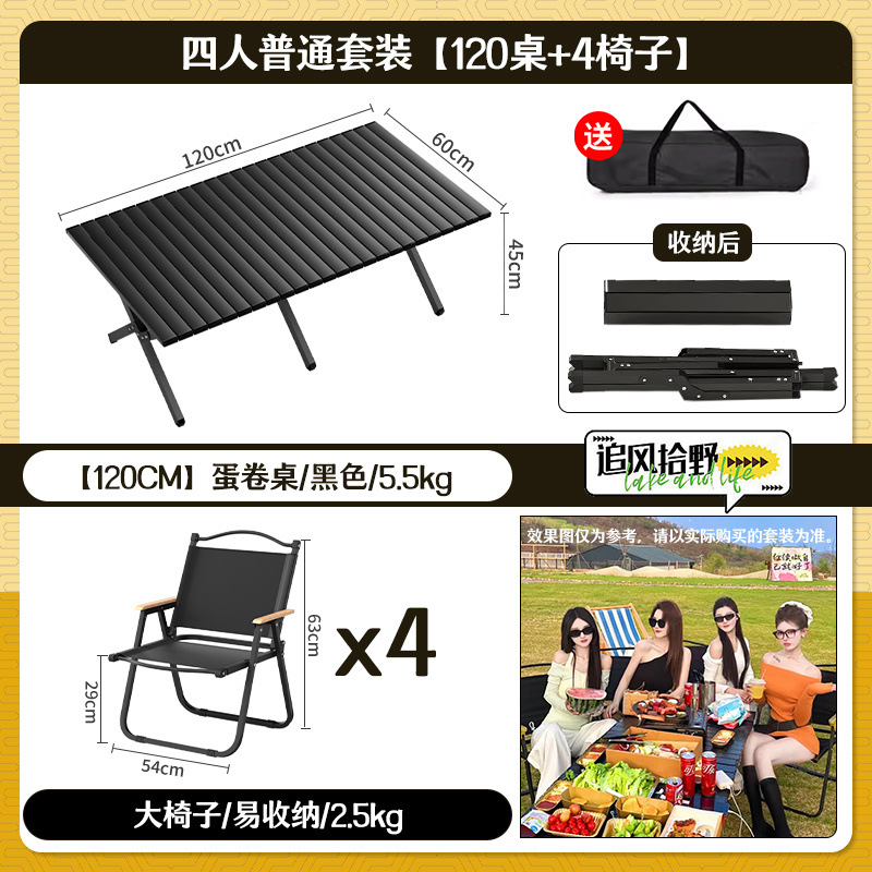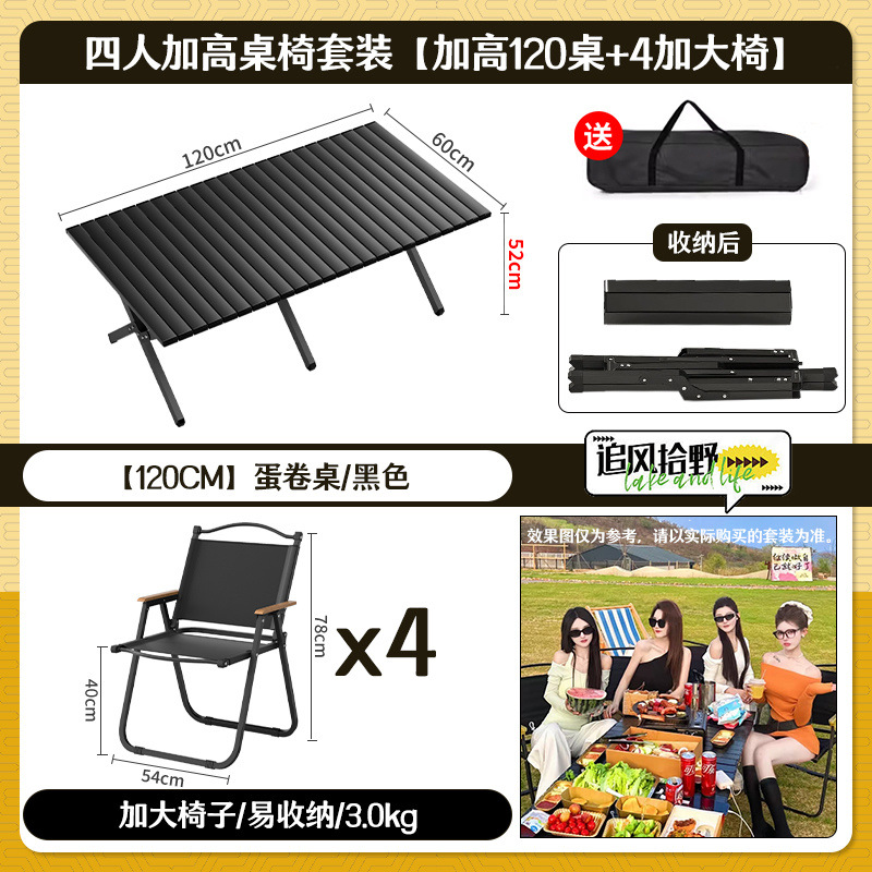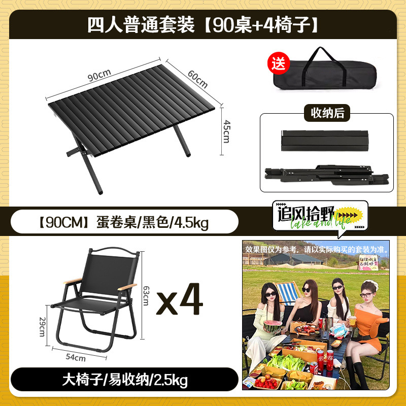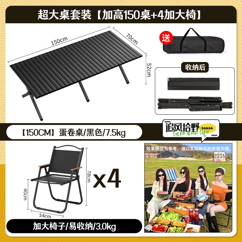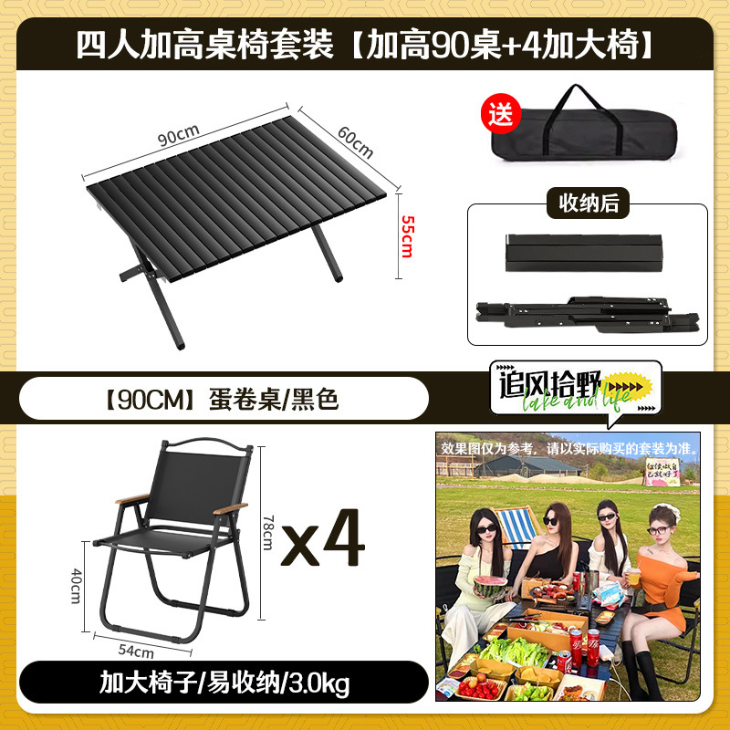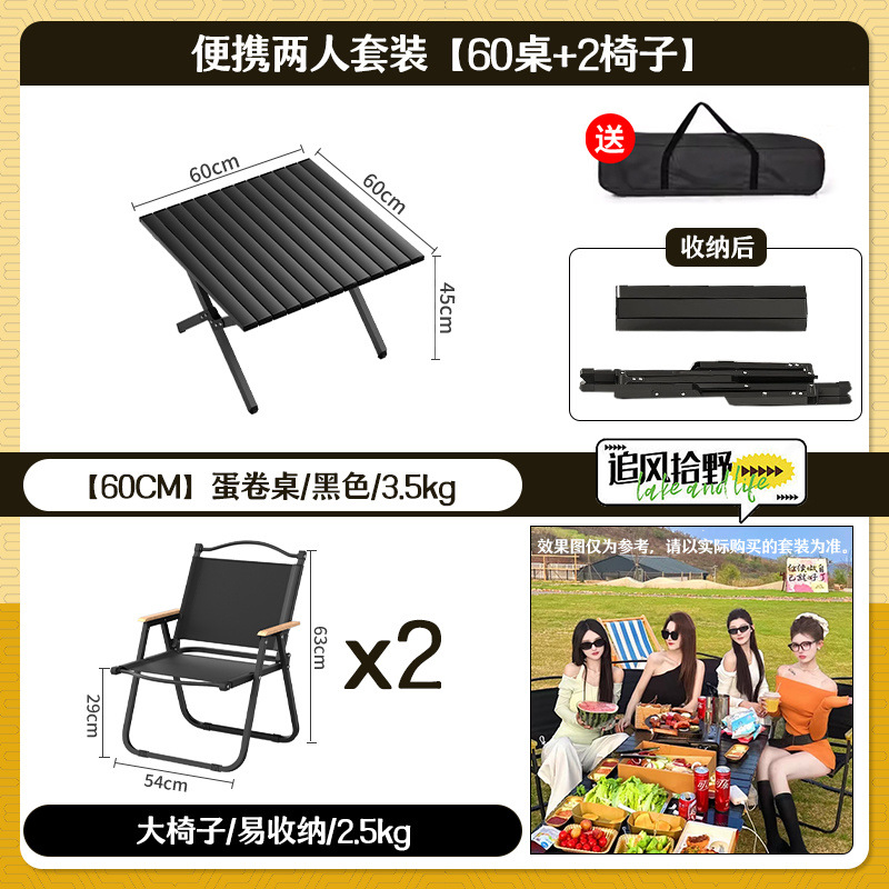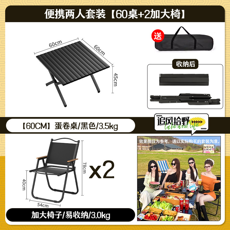 • 우아한 광택 블랙 휴대용 2인 세트 [테이블 60개 + 대형 의자 2개]