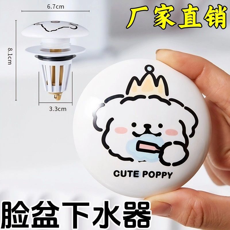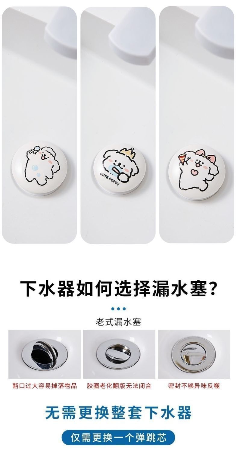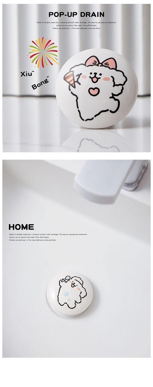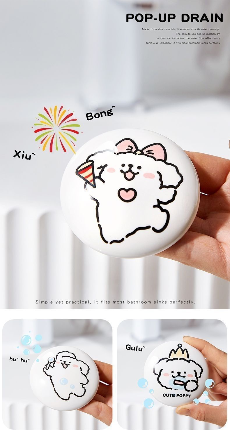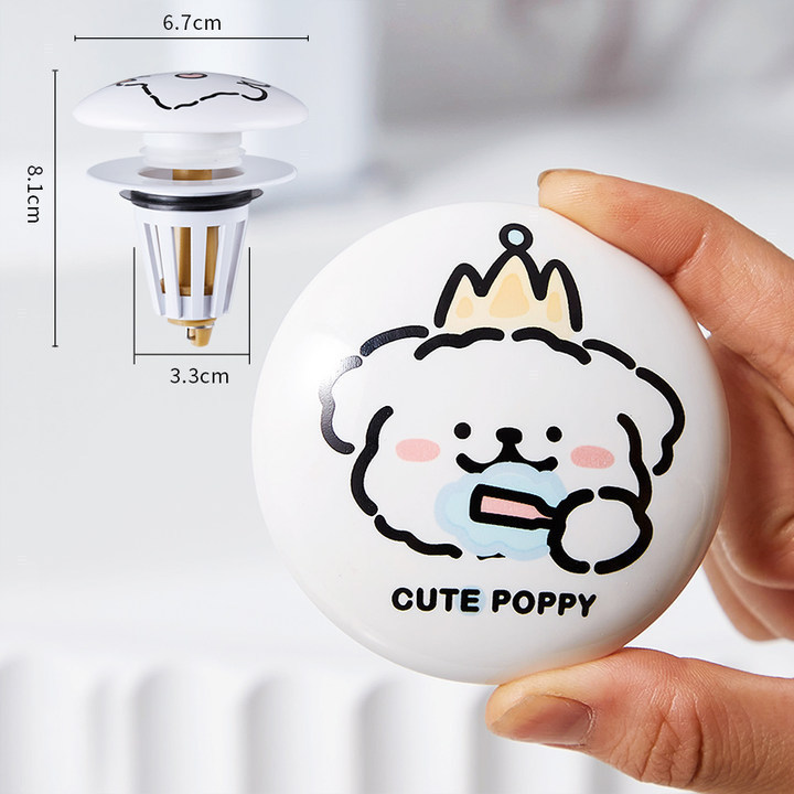 세면대 욕실 세라믹 세면대 배수구 크리 에이 티브 워시 푸시 형 배수구 플러그를위한 귀여운 강아지 누수 플러그