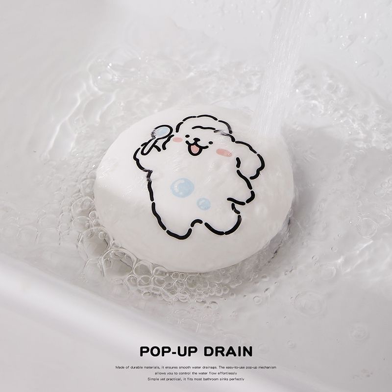 세면대 욕실 세라믹 세면대 배수구 크리 에이 티브 워시 푸시 형 배수구 플러그를위한 귀여운 강아지 누수 플러그스토어 가기