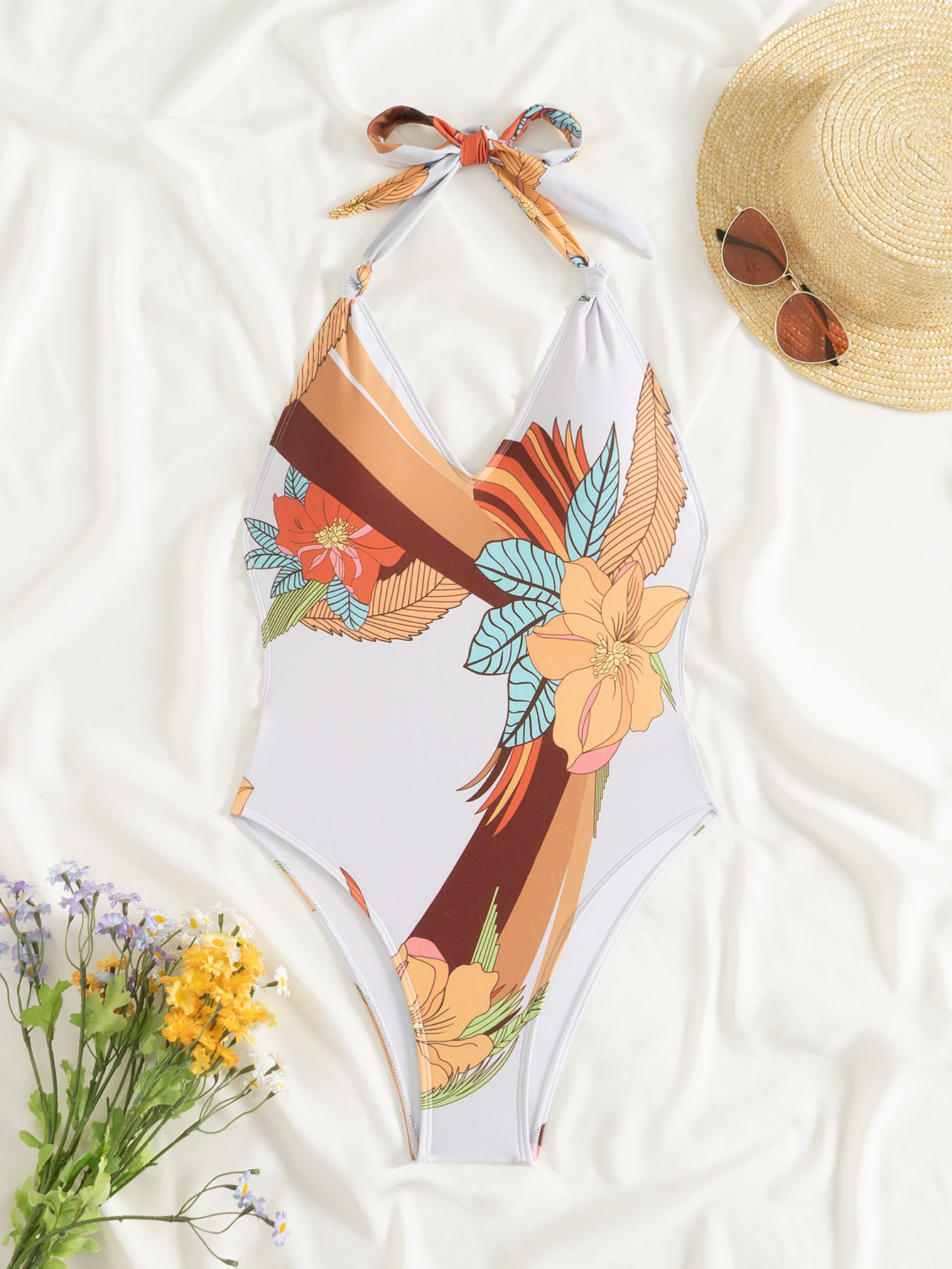 2025 새로운 대외 무역 크로스 미러 유럽과 미국 아마존 슬링 인 프린트 레이스 업 타이트 원피스 수영복 여성용