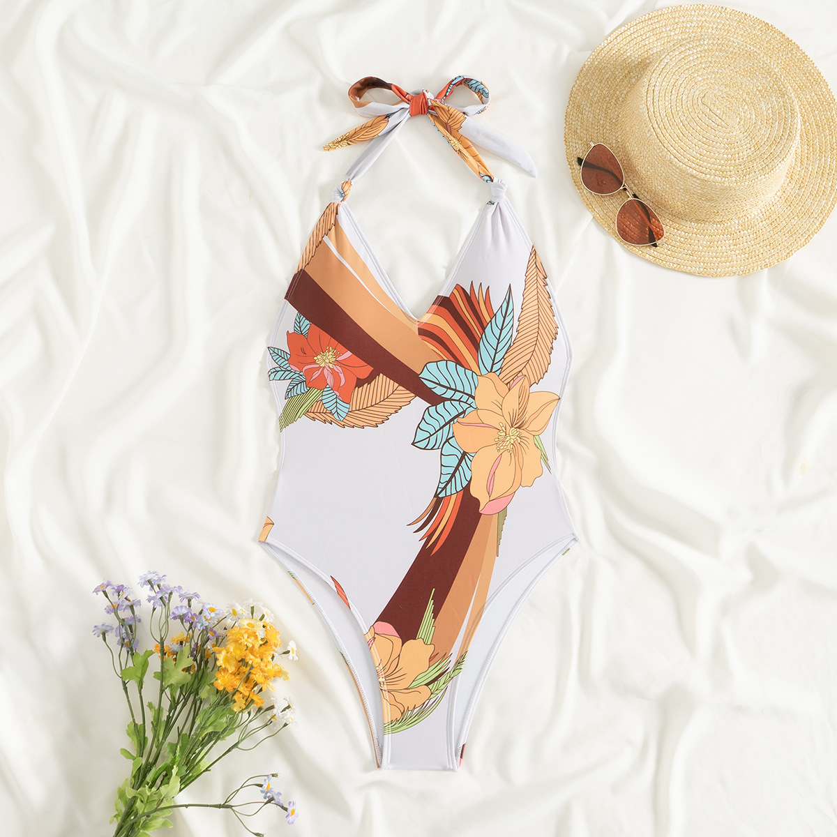 2025 새로운 대외 무역 크로스 미러 유럽과 미국 아마존 슬링 인 프린트 레이스 업 타이트 원피스 수영복 여성용스토어 가기