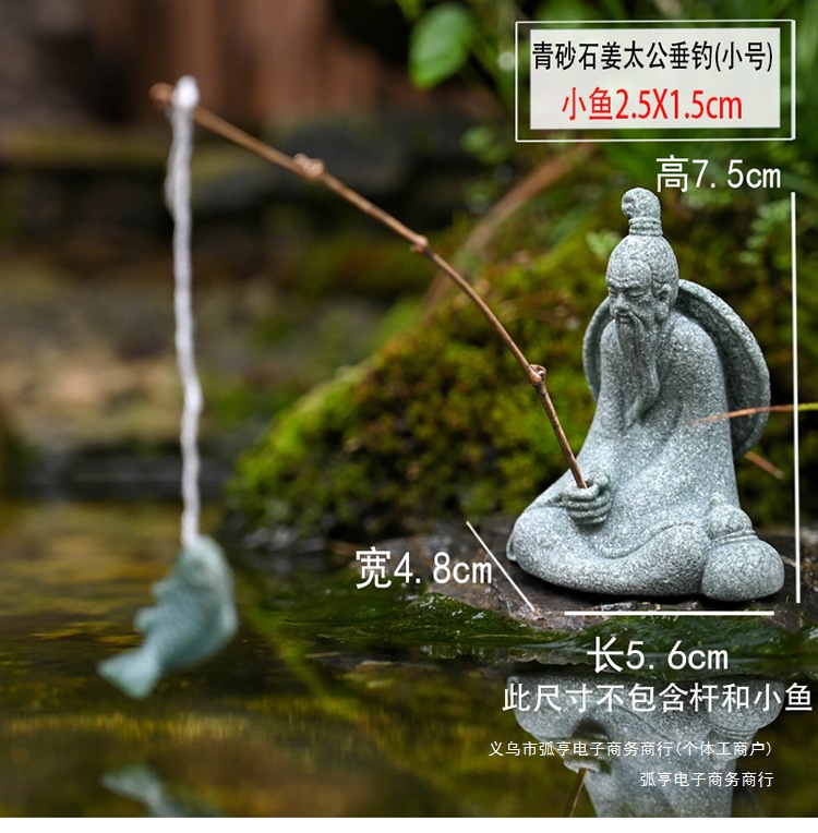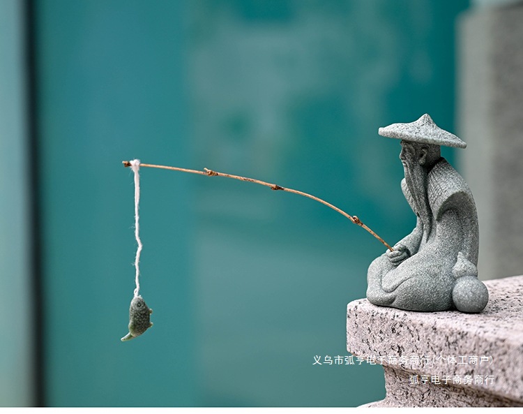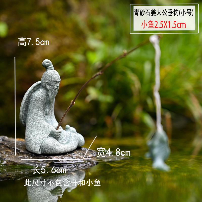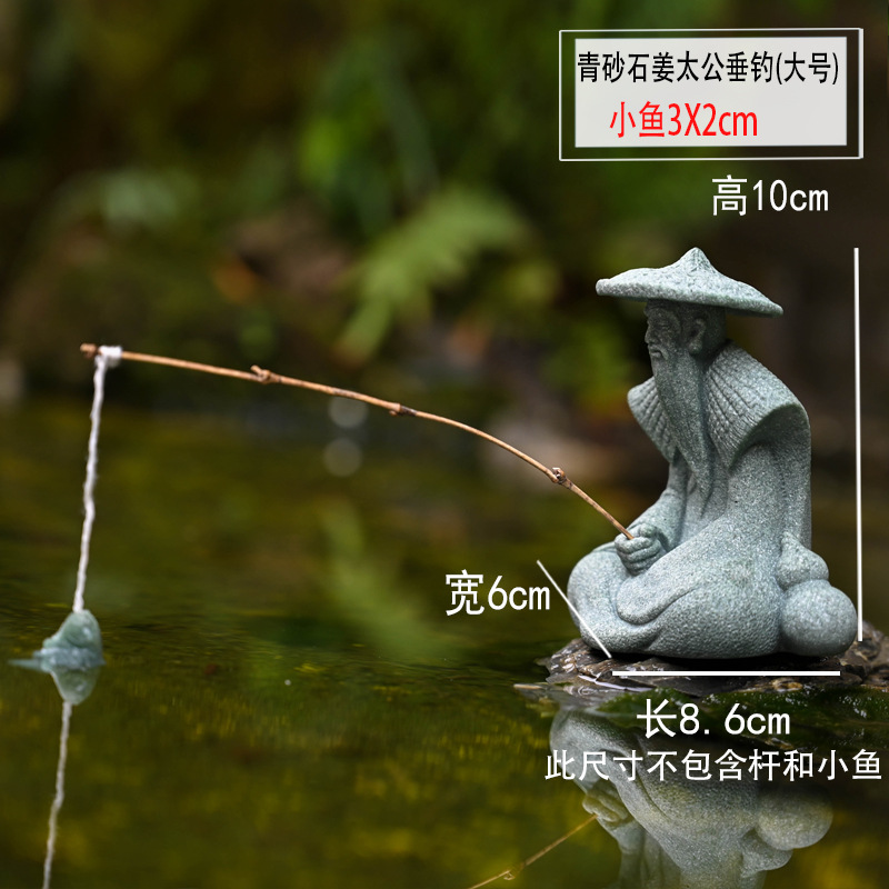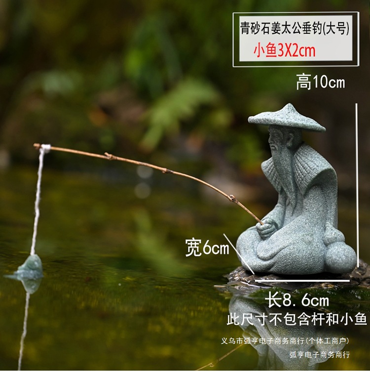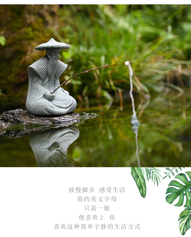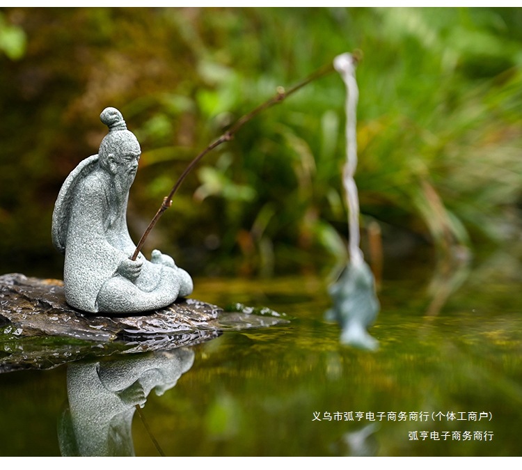 대형 Jiang Taigong 낚시 정원 흐르는 물 장식 장식품 바위 물고기 탱크 낚시 어부 수지 공예 조경스토어 가기