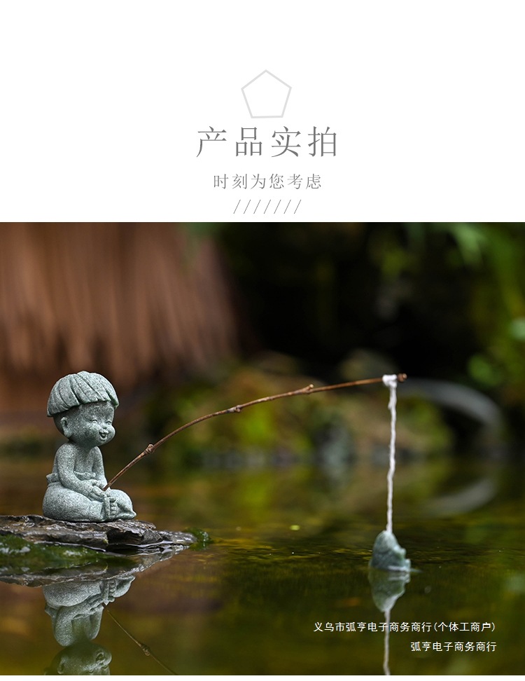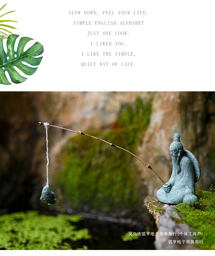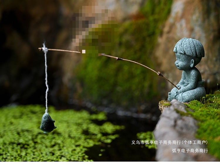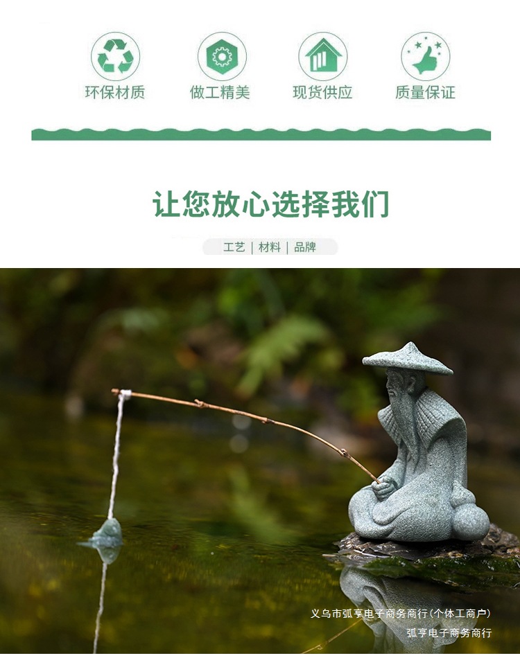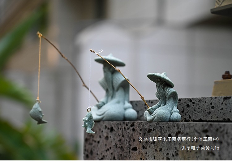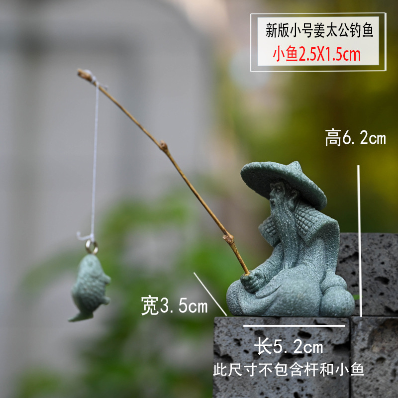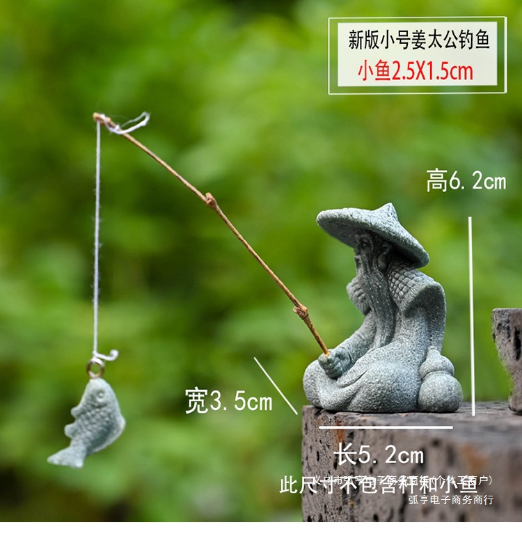 대형 Jiang Taigong 낚시 정원 흐르는 물 장식 장식품 바위 물고기 탱크 낚시 어부 수지 공예 조경스토어 가기