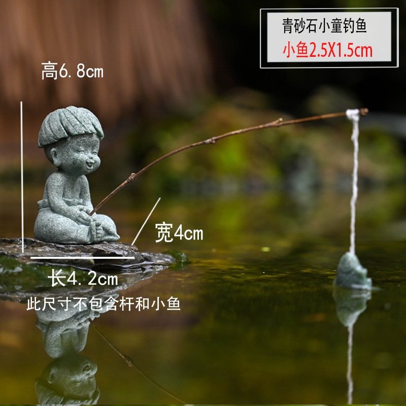 대형 Jiang Taigong 낚시 정원 흐르는 물 장식 장식품 바위 물고기 탱크 낚시 어부 수지 공예 조경