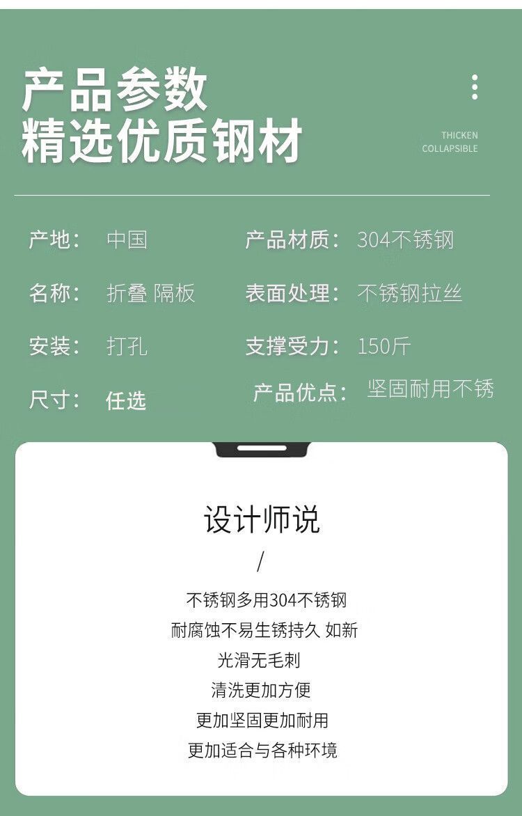 접이식 두꺼운 304 스테인레스 스틸 벽걸이 형 주방 간단한 벽 탁상 1 층 천공 선반