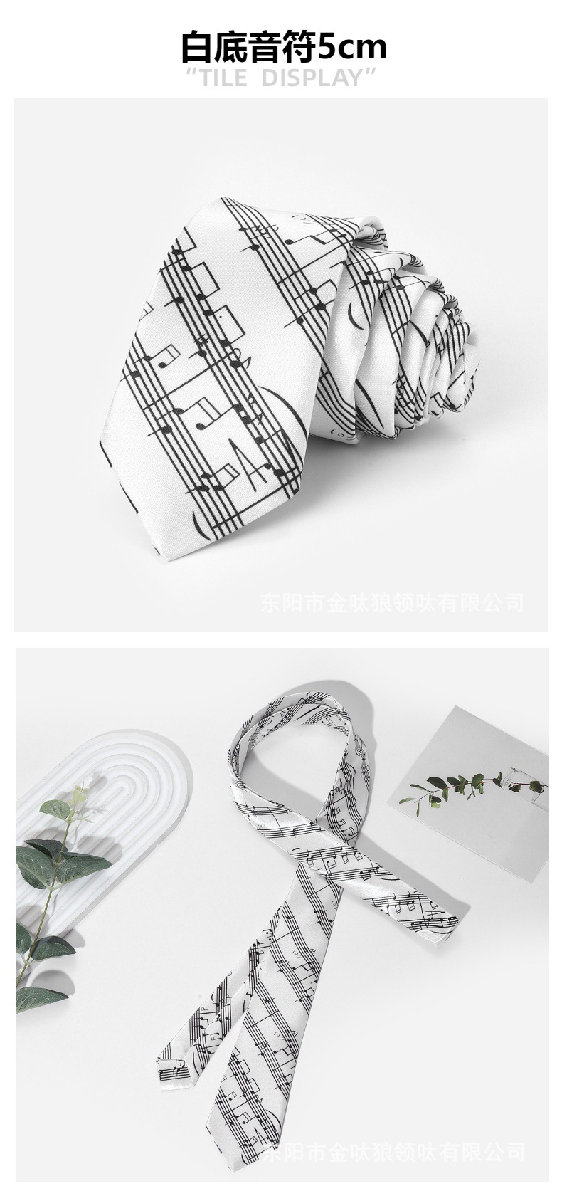 인쇄된 얇고 좁은 음표, 표범 무늬 격자 무늬, 반점 카드 장식, 트렌디한 맞춤형 넥타이, 2차원 동일 스타일스토어 가기