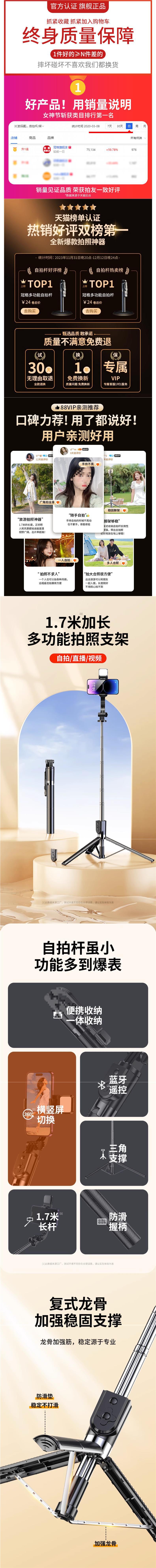 • 1.7m 블랙 [일체형 접이식 + 이중 안정 삼각대 지지대] + 15m Douyin 리모콘.