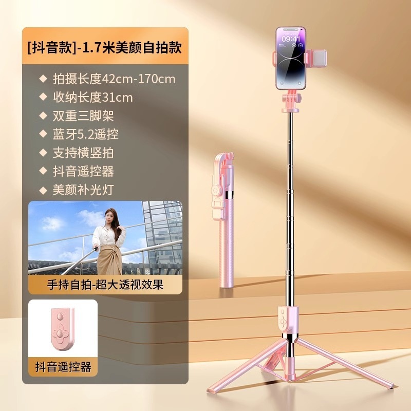 • 1.7m 핑크 싱글 필인 라이트 모델 [통합 접이식 + 듀플렉스 안정적인 3각 지지대] + 15m Douyin 리모콘.