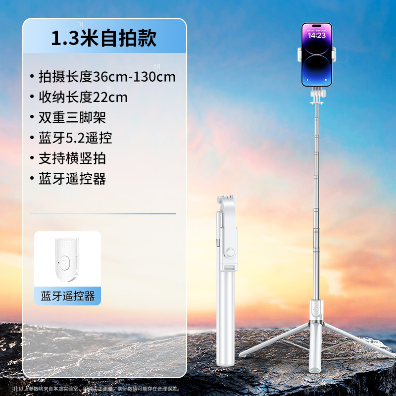 • 1.3m 화이트 [일체형 접이식 + 이중 안정 삼각대 지지대] + 15m 블루투스 리모콘.