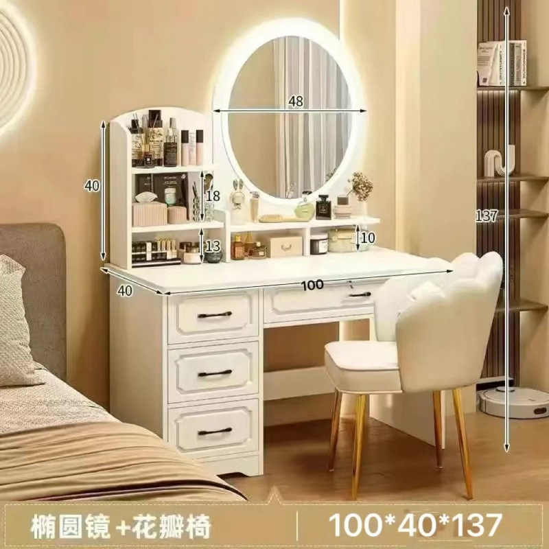 • 따뜻한 흰색 100cm 4단 원형 거울 + 화장대