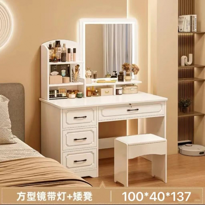 • 따뜻한 흰색 100cm 조명이 있는 4단 사각 거울 + 화장대