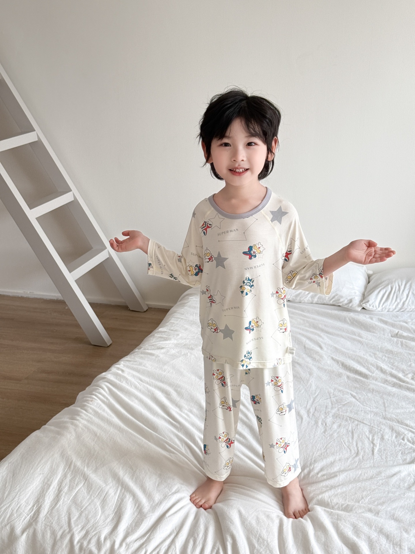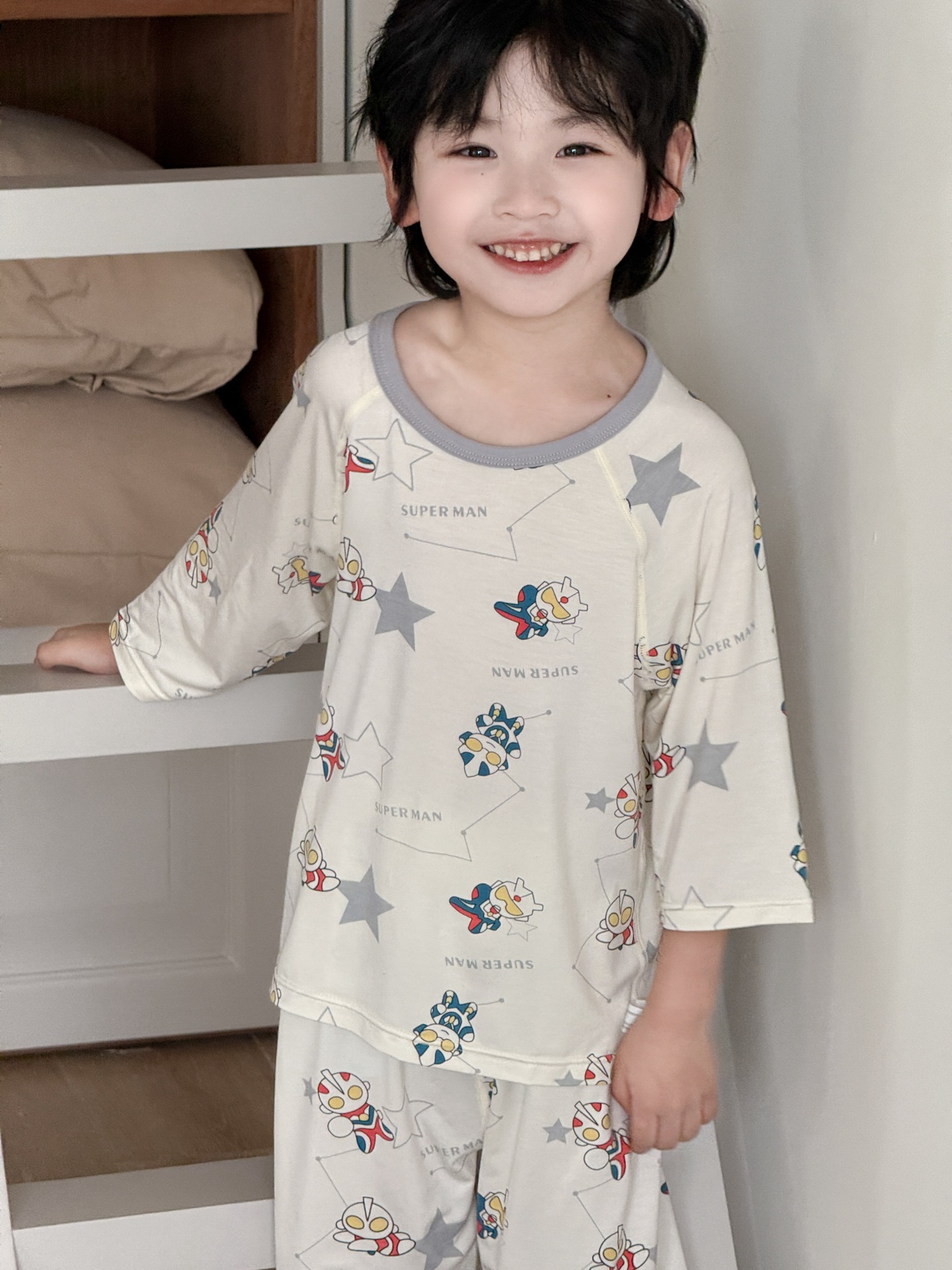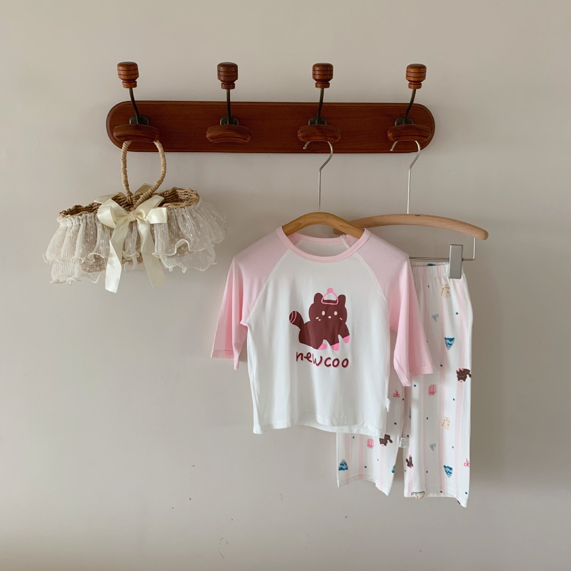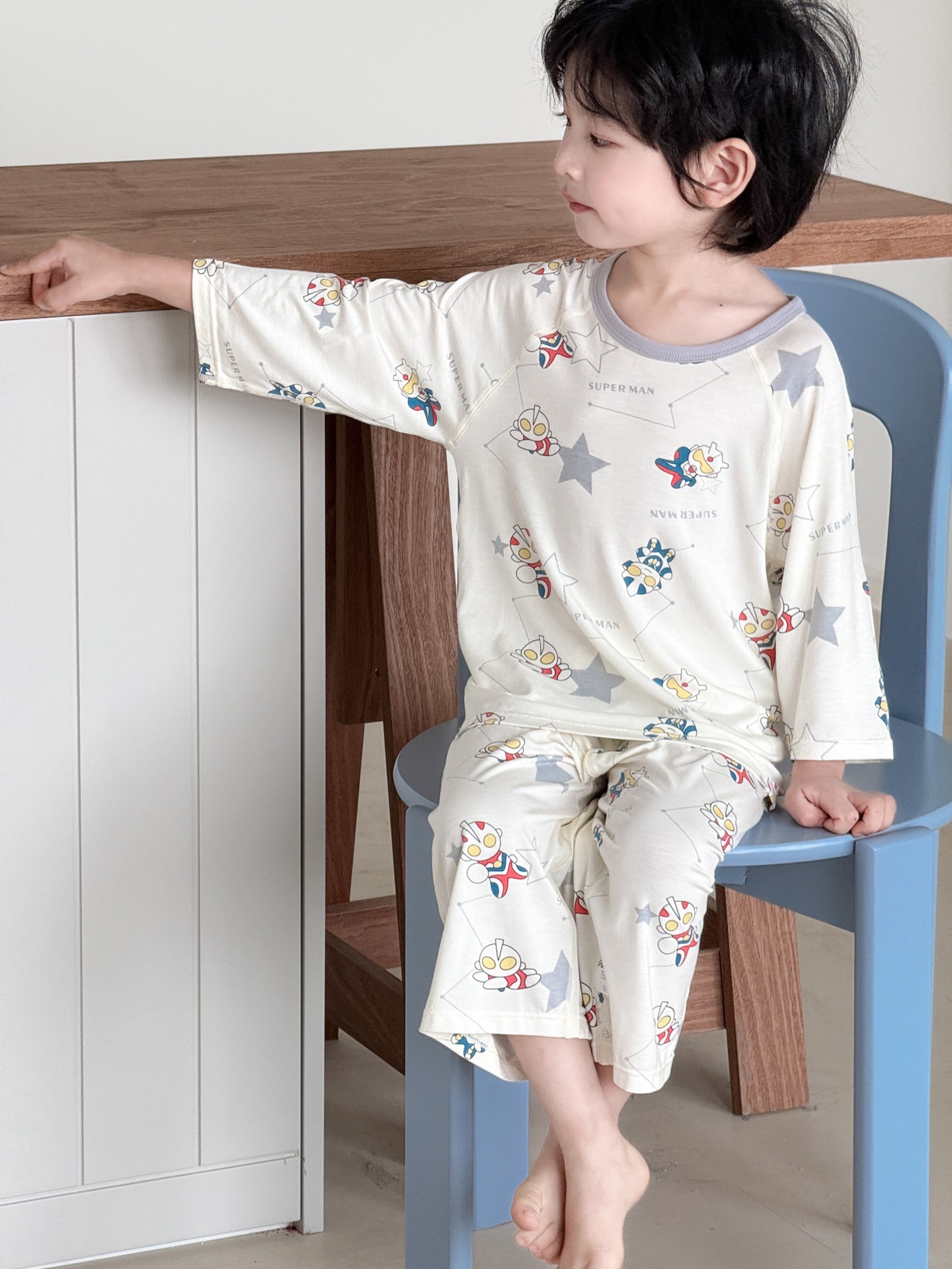 어린이 잠옷 소녀 여름 스타일 소년 7부 소매 7부 바지 2피스 세트 아기 아동 의류 도매 만화 세트