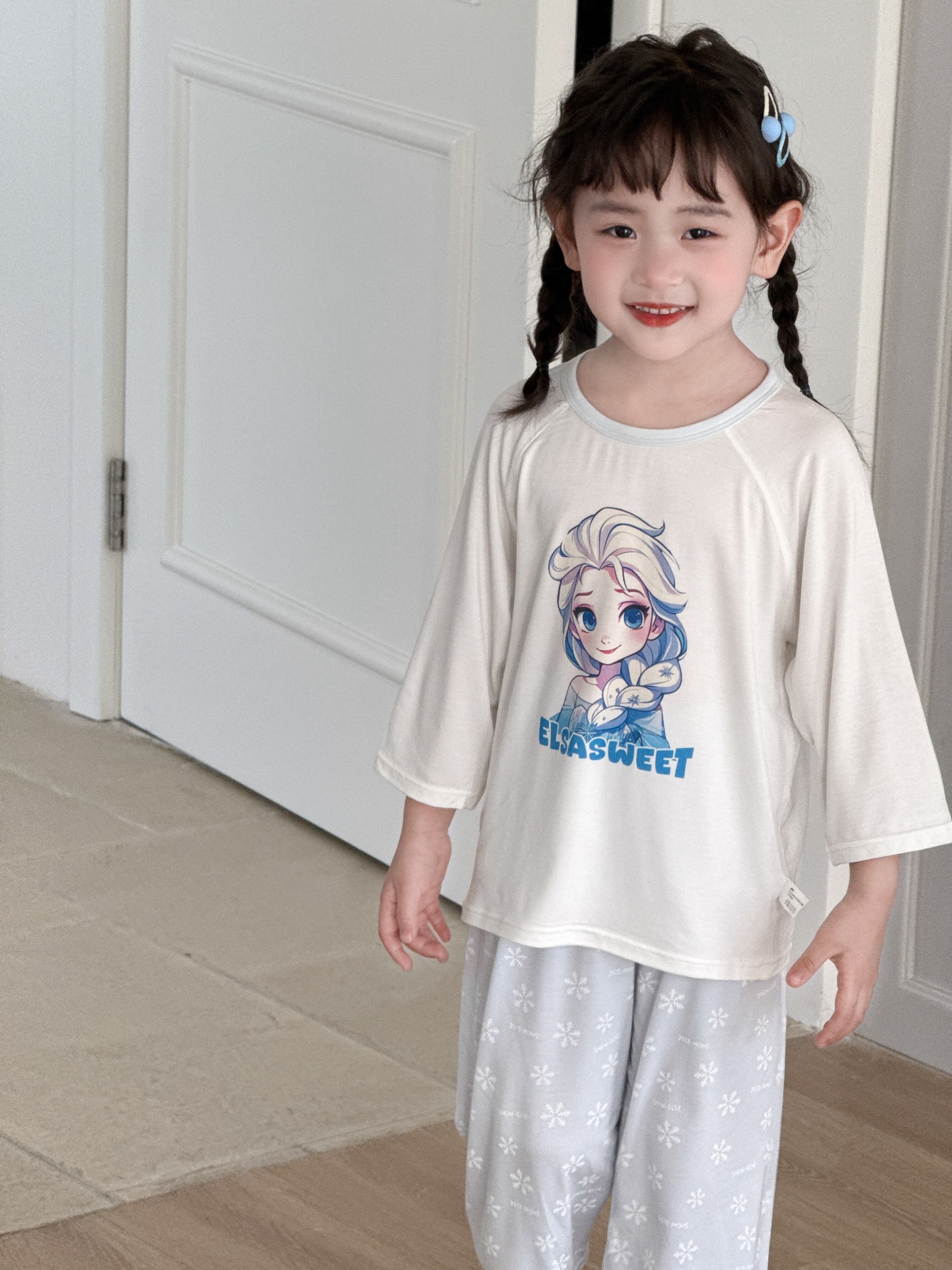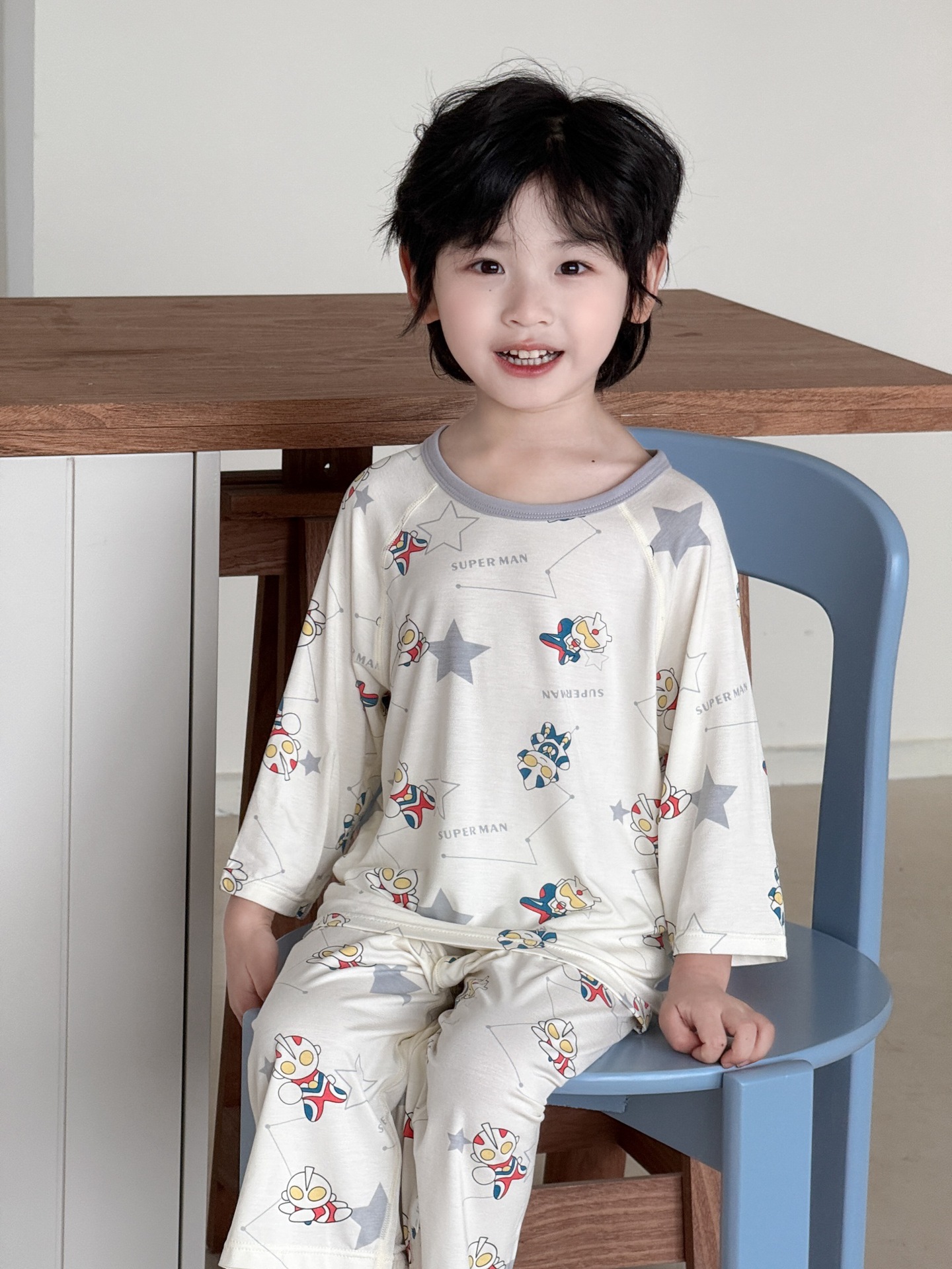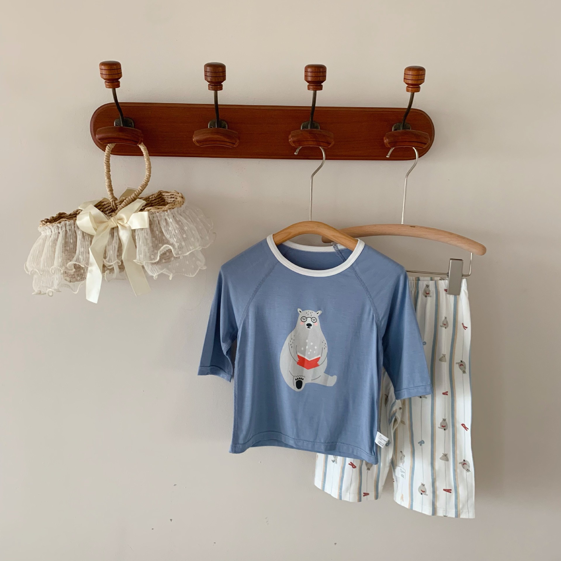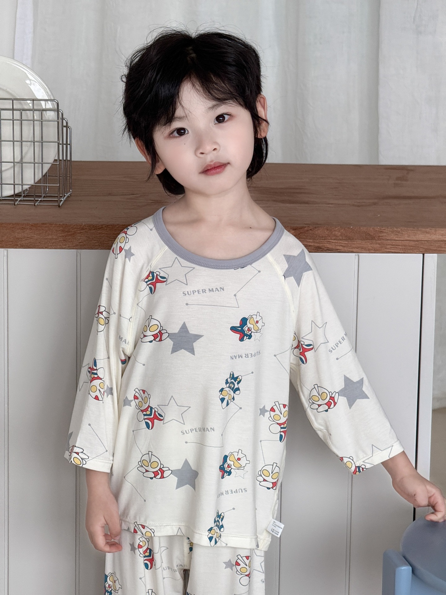 어린이 잠옷 소녀 여름 스타일 소년 7부 소매 7부 바지 2피스 세트 아기 아동 의류 도매 만화 세트