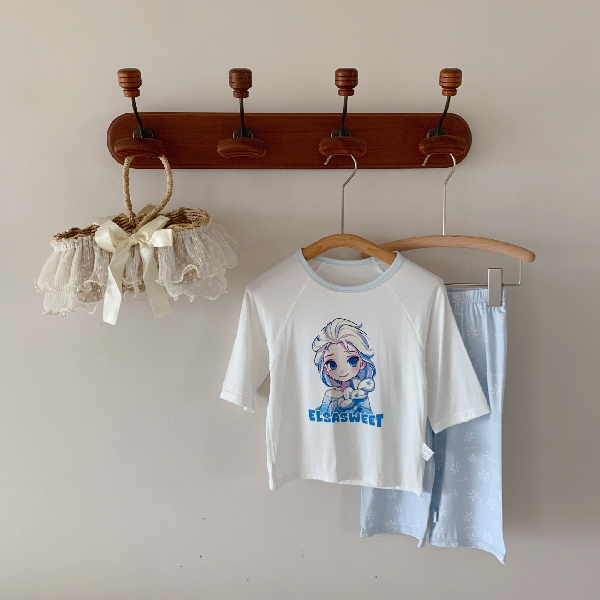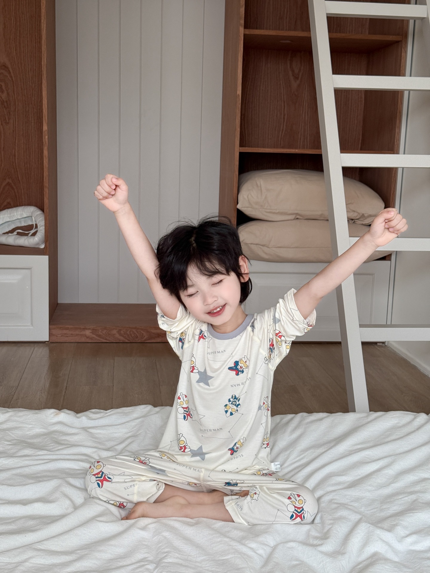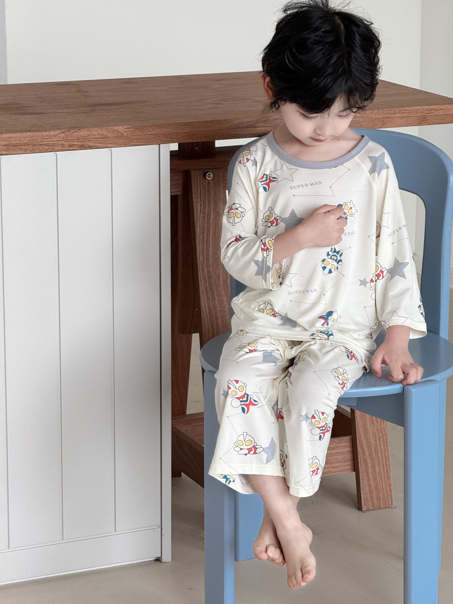 어린이 잠옷 소녀 여름 스타일 소년 7부 소매 7부 바지 2피스 세트 아기 아동 의류 도매 만화 세트스토어 가기